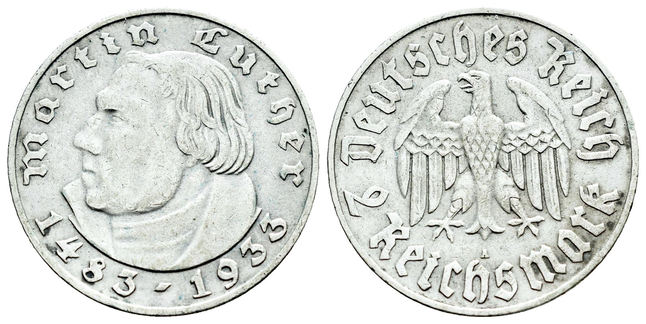 Alemania. Third Reich. 2 reichsmark. 1933. Berlín. A. (Km-79). Ag. 7,45 g. MBC+. Est...20,00.