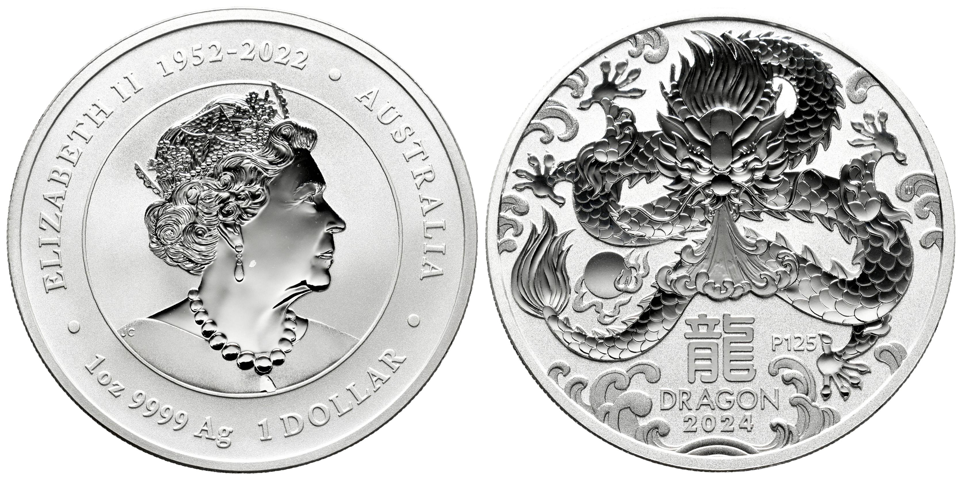Australia. Elizabeth II. 1 dollar. 2024. Perth. P. (Km-4639). Ag. 31,49 g. Dragón. Tirada de 7500 piezas. PROOF. Est...50,00.