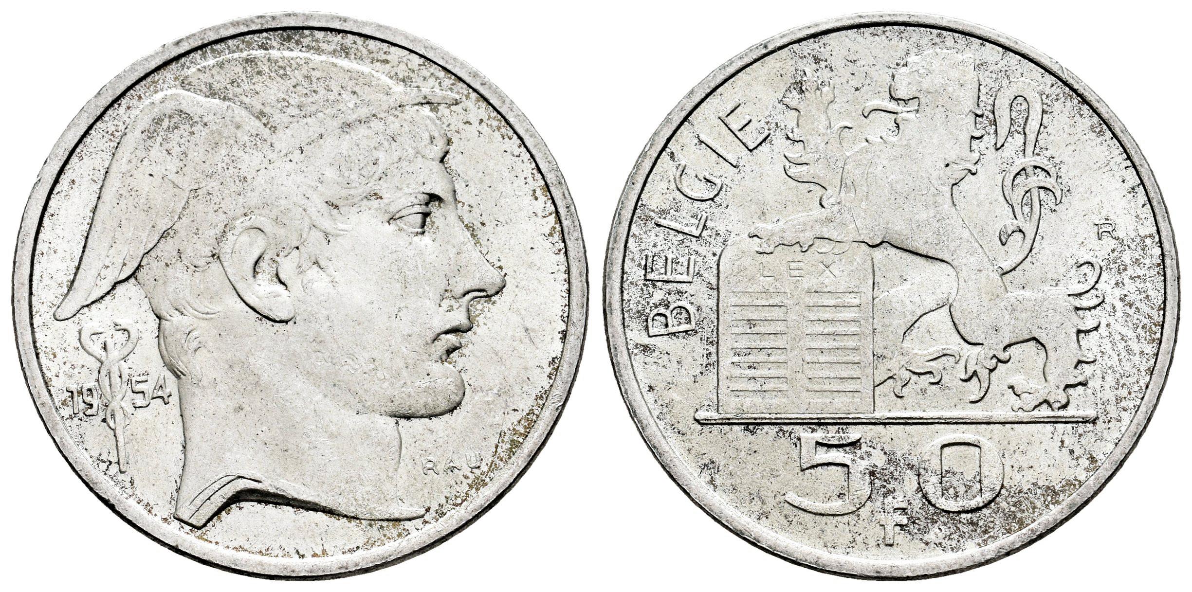 Bélgica. 50 francs. 1954. (Km-136). Ag. 12,51 g. Texto en francés. EBC+. Est...30,00.