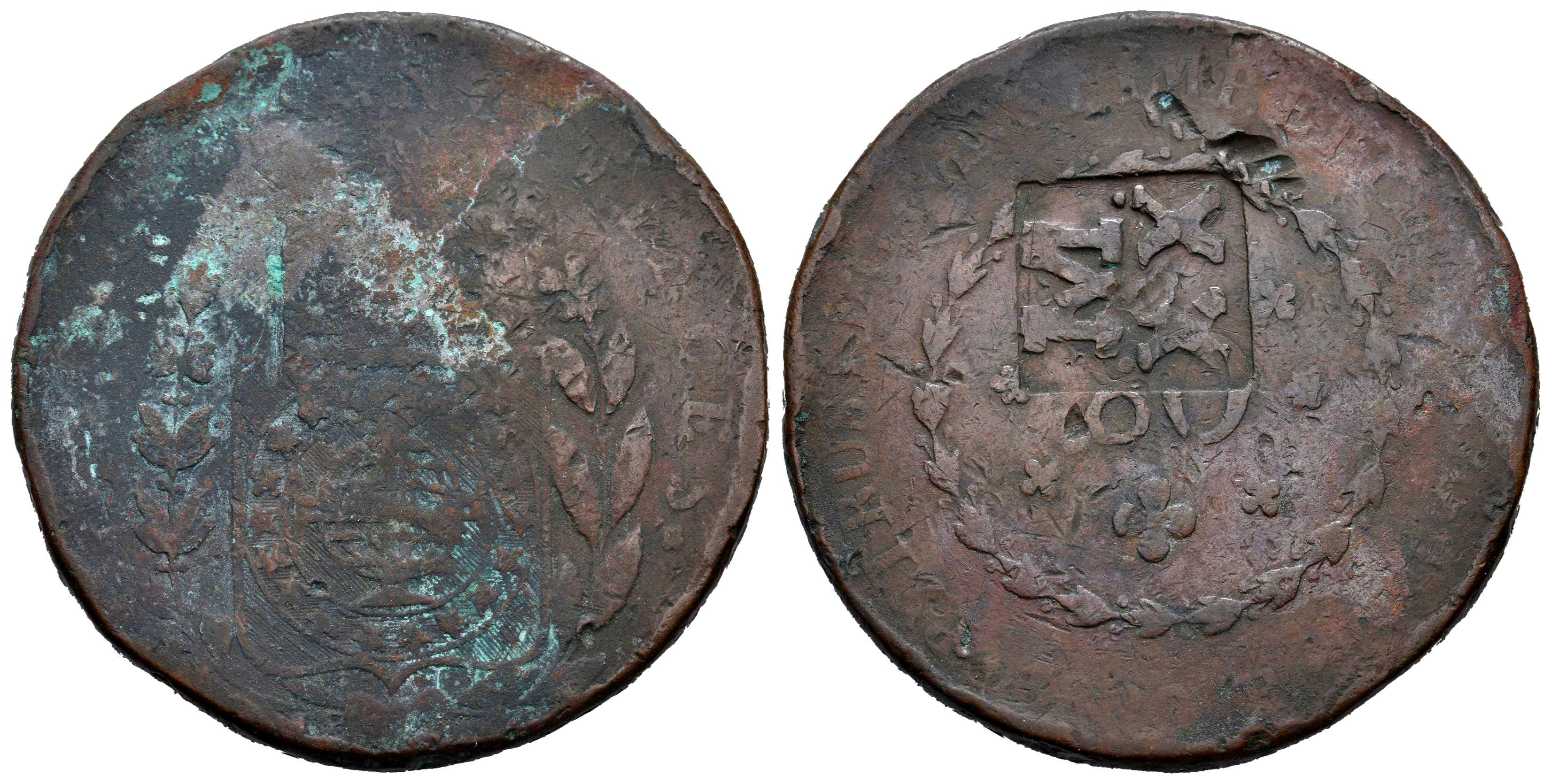 Brasil. Ae. 24,93 g. Contramarca de XX Reis de Maranhao 1834, aplicada sobre 80 Reis de Pedro I 1829. BC-. Est...60,00.
