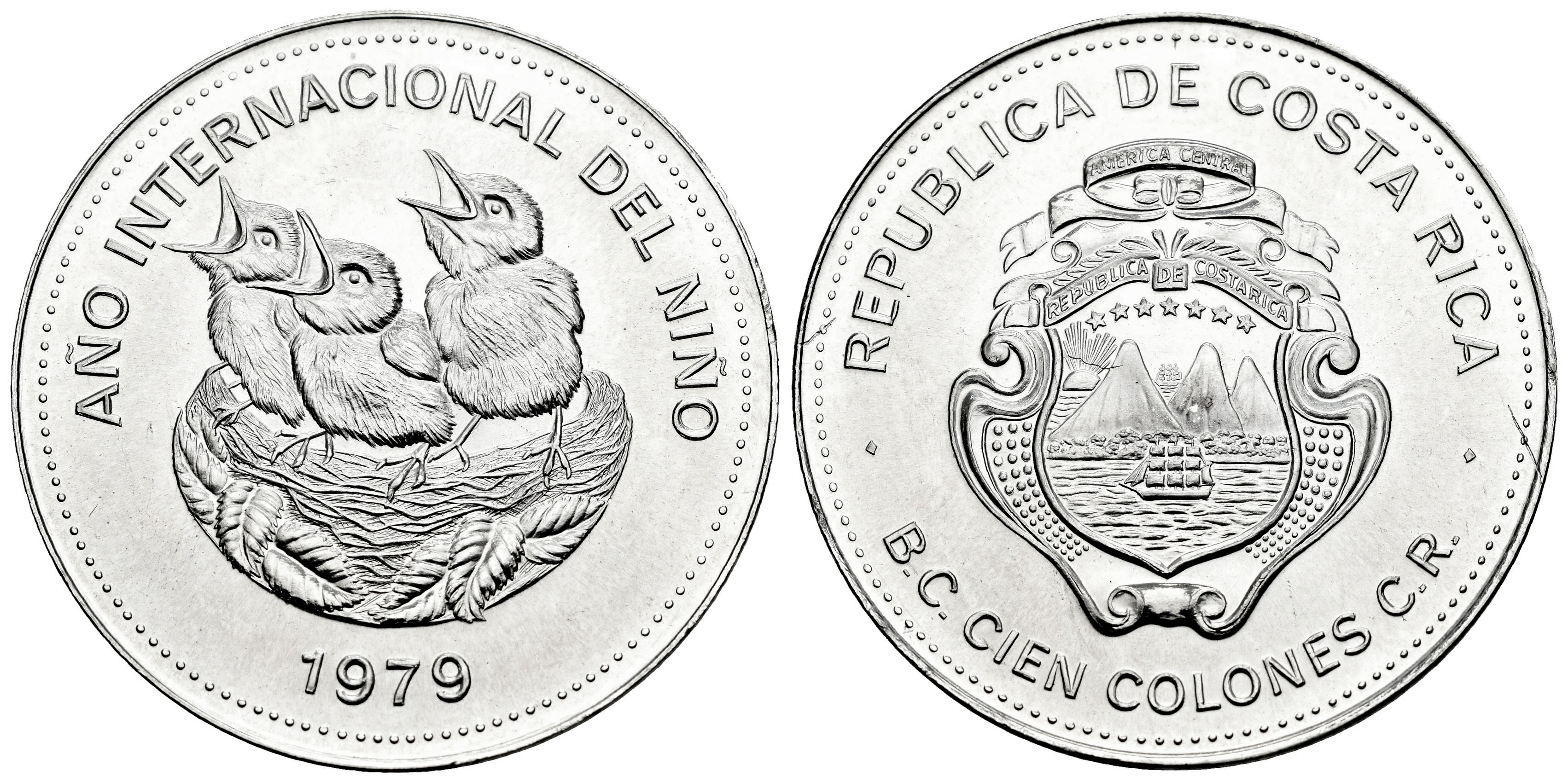 Costa Rica. 100 colones. 1979. (Km-206). Ag. 34,75 g. Año Internacional del Niño. SC. Est...35,00.
