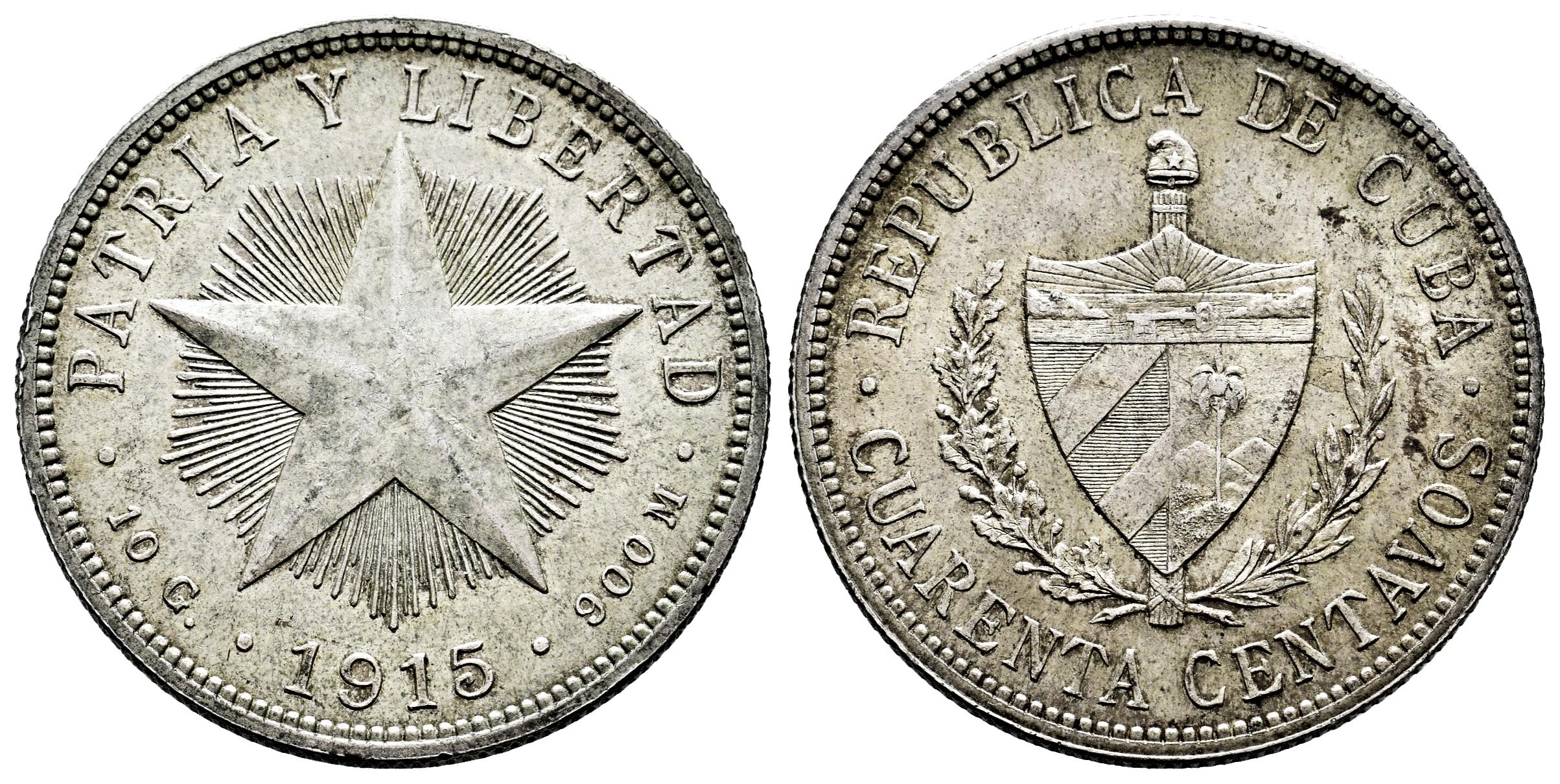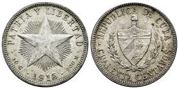 Cuba. 40 centavos. 1915. (Km-14.3). Ag. 10,01 g. Tono. EBC-. Est...45,00.