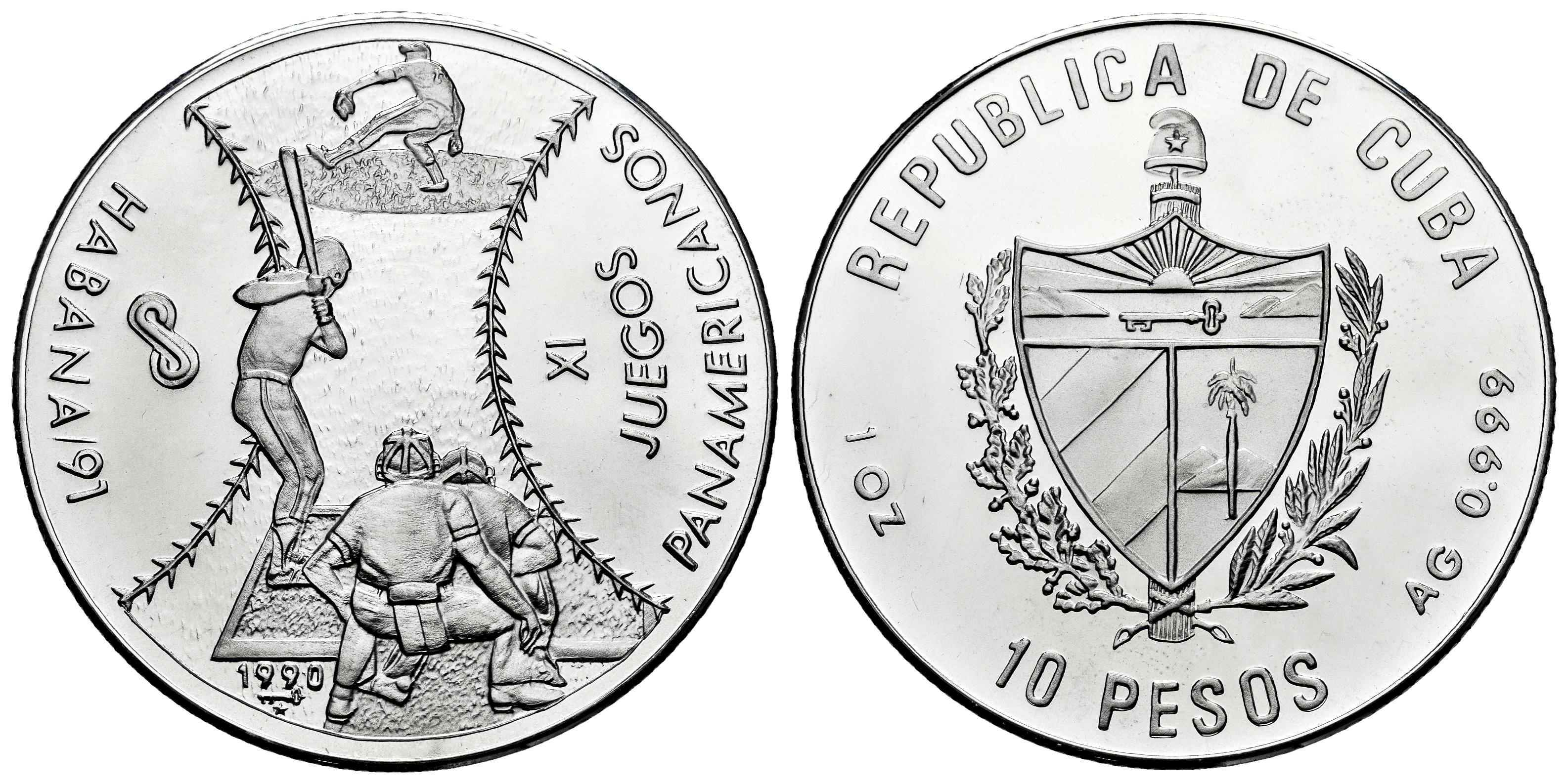 Cuba. 10 pesos. 1990. (Km-P39). Ag. 31,11 g.  Juegos Panamericanos de La Habana 1991 - Béisbol. PROOF. Est...60,00.