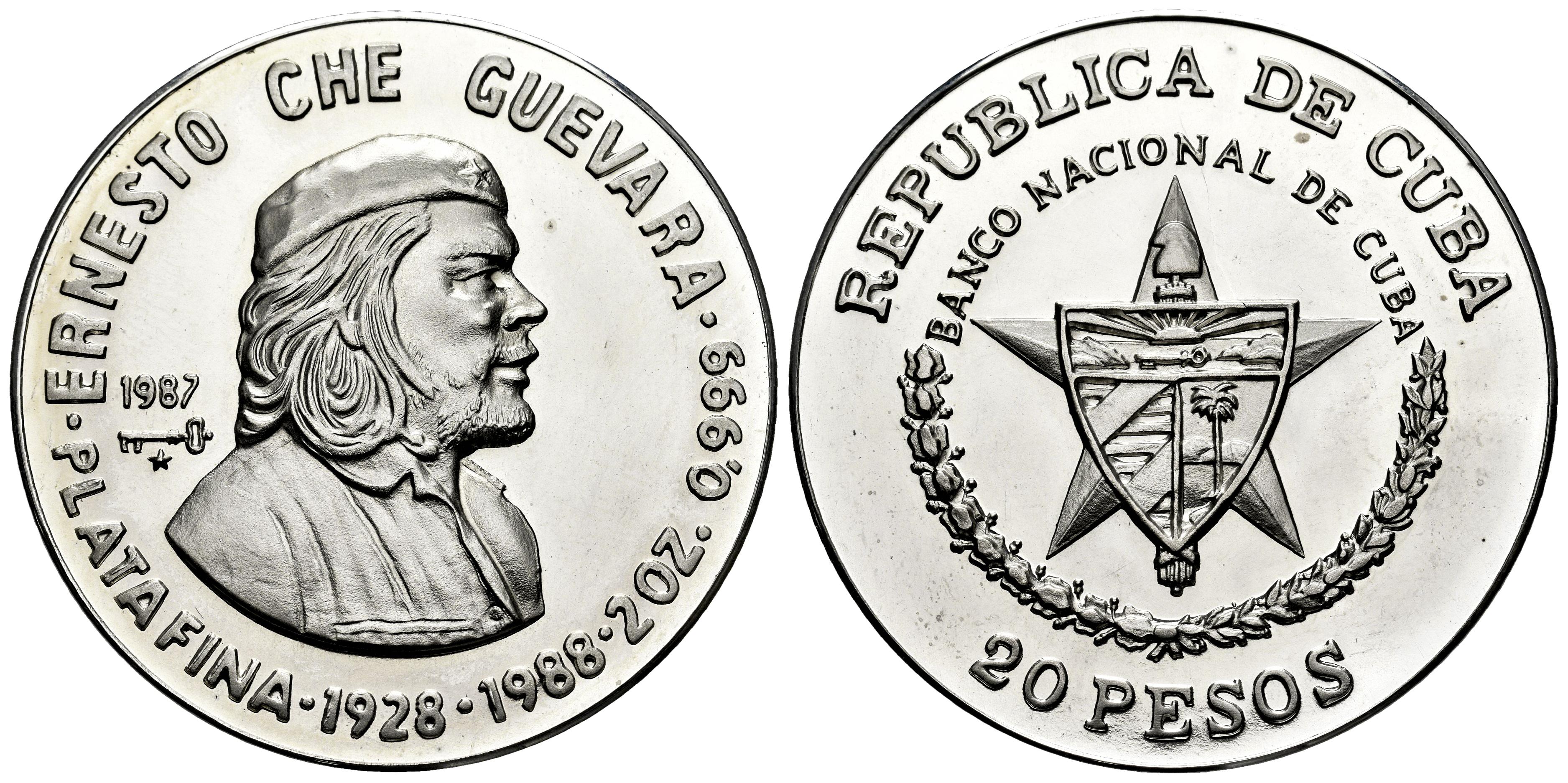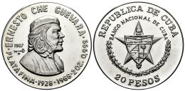 Cuba. 20 pesos. 1988. (Km-170). Ag. 62,11 g. Ernesto Che Guevara - 60 aniversario de su nacimiento. PROOF. Est...110,00.