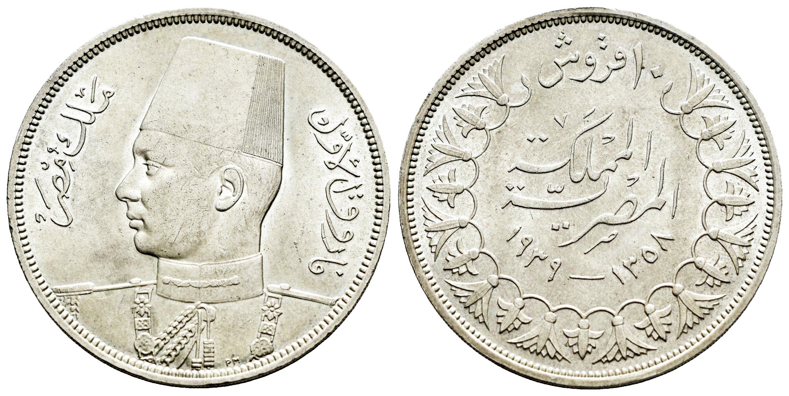 Egipto. Farouk I (1936-1952). 10 piastre. 1356 H (1937). (Km-367). Ag. 14,00 g.  Atractiva pátina de monetario. Brillo original. SC-. Est...30,00.