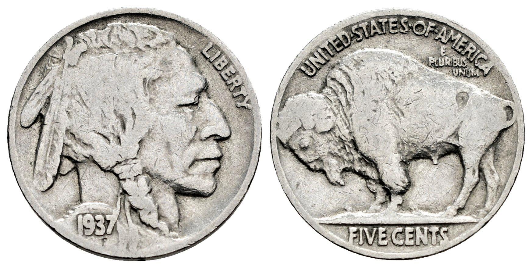 Estados Unidos. Buffalo Nickels. 5 cents. 1937. Philadelphia. (Km-134). Cu-Ni. 4,95 g. MBC. Est...25,00.