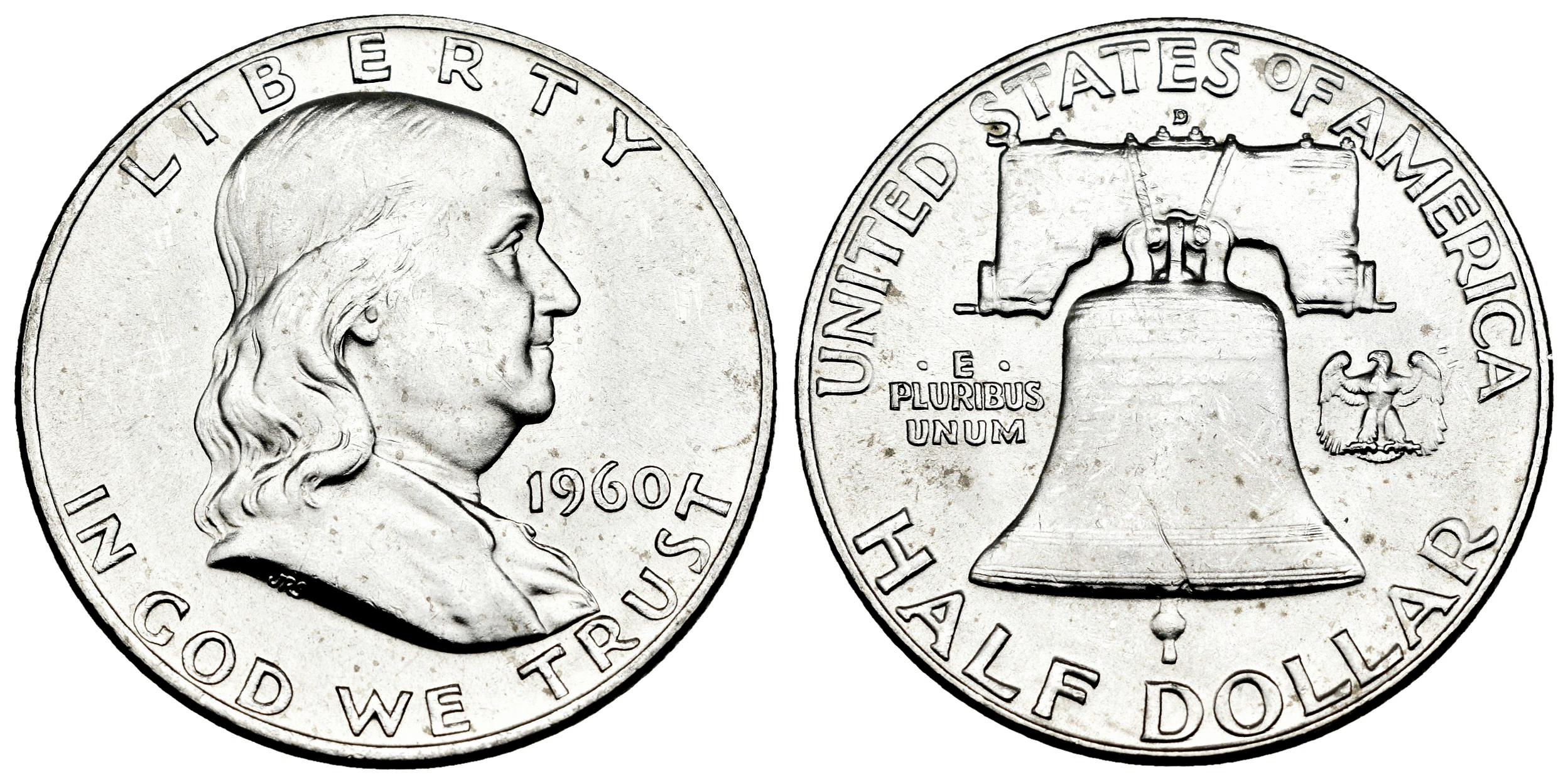 Estados Unidos. Franklin Half Dollar. 1/2 dollar. 1960. Denver. D. (Km-199). Ag. 12,58 g. Pleno brillo original. SC. Est...35,00.