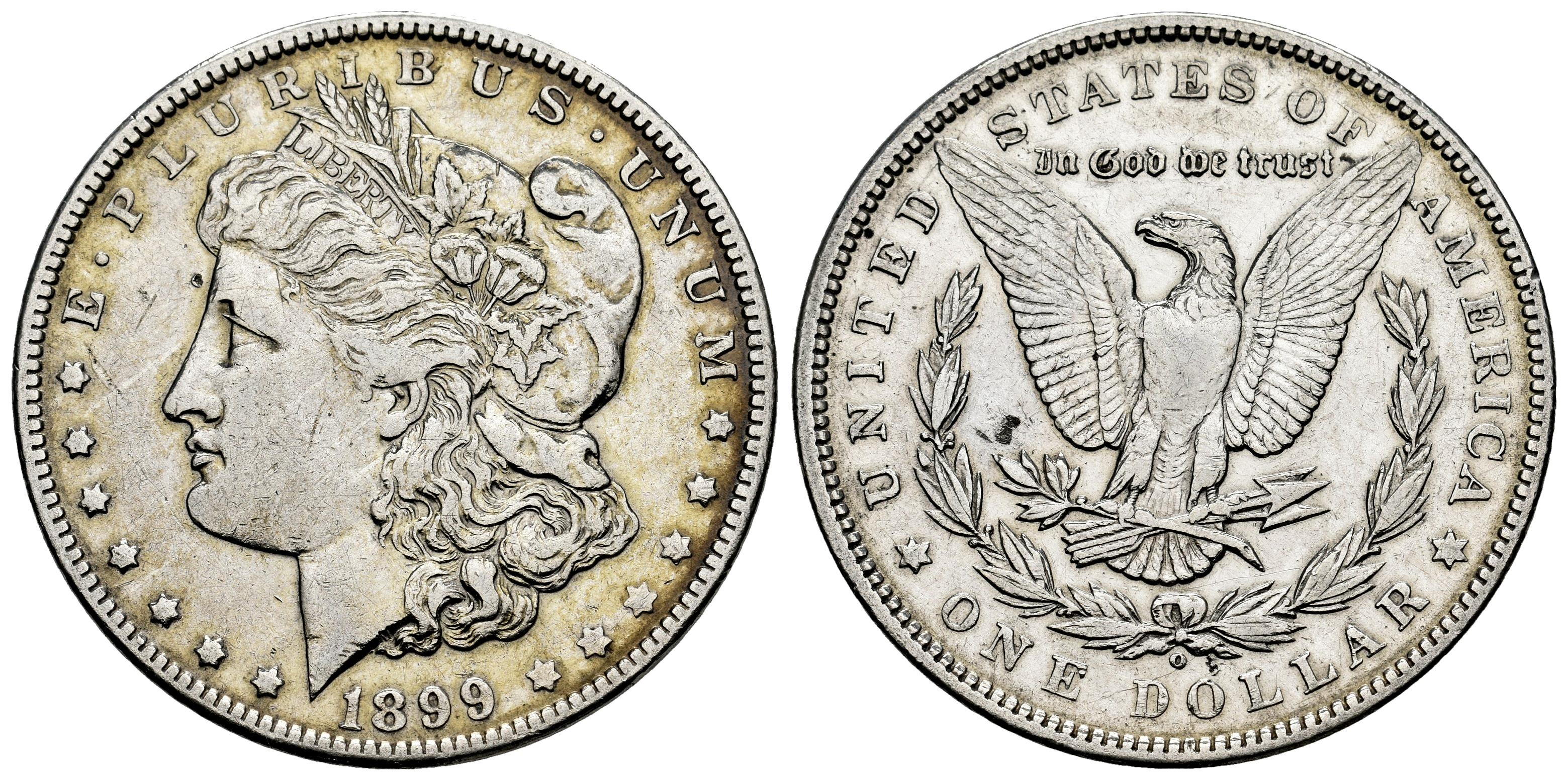 Estados Unidos. Morgan Dollars. 1 dollar. 1899. Nueva Orleans. O. (Km-110). Ag. 26,71 g. Limpiada. MBC. Est...40,00.