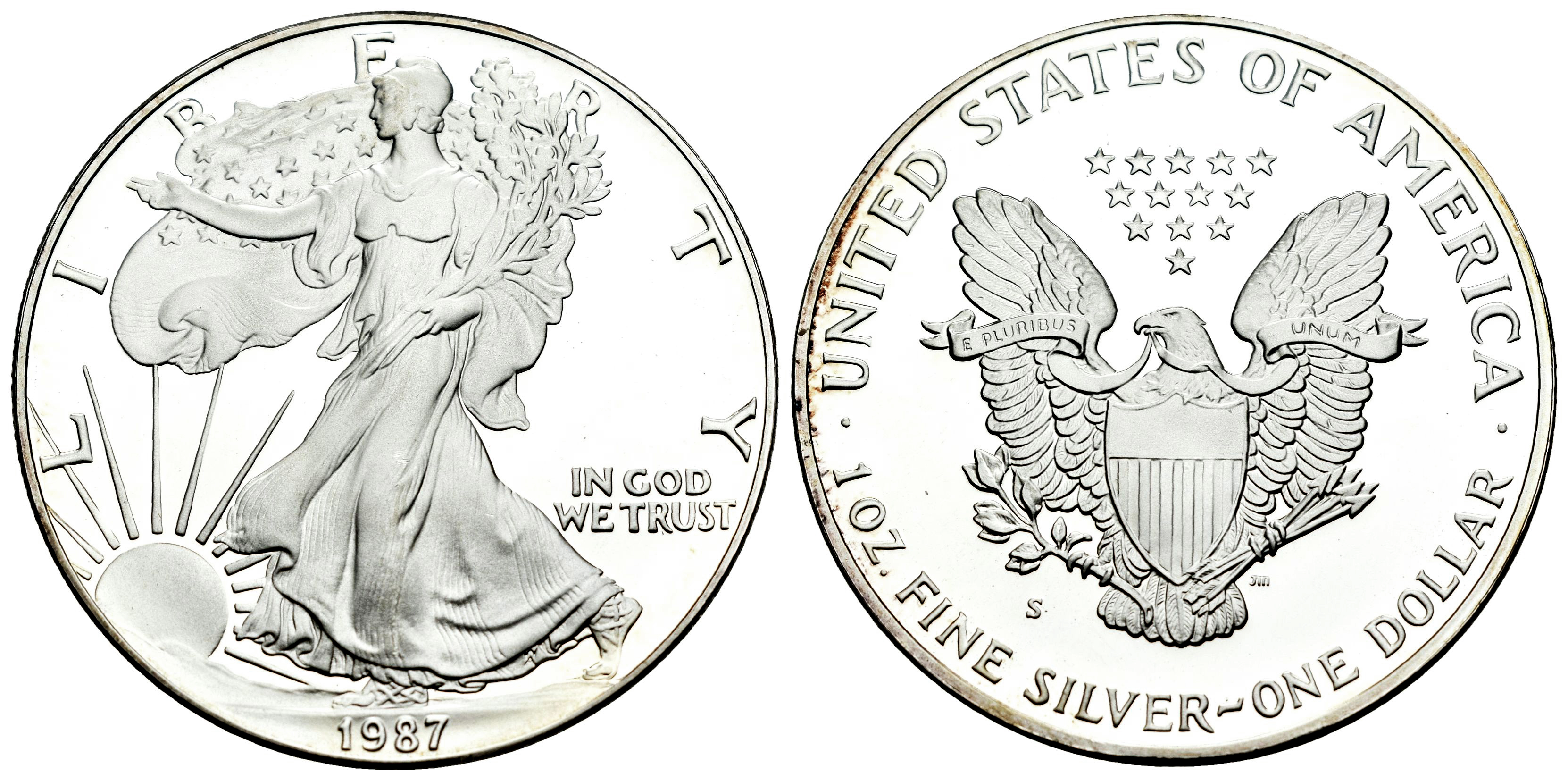 Estados Unidos. Silver Eagle. 1 dollar. 1987. San Francisco. S. (Km-273). Ag. 31,36 g. PROOF. Est...45,00.