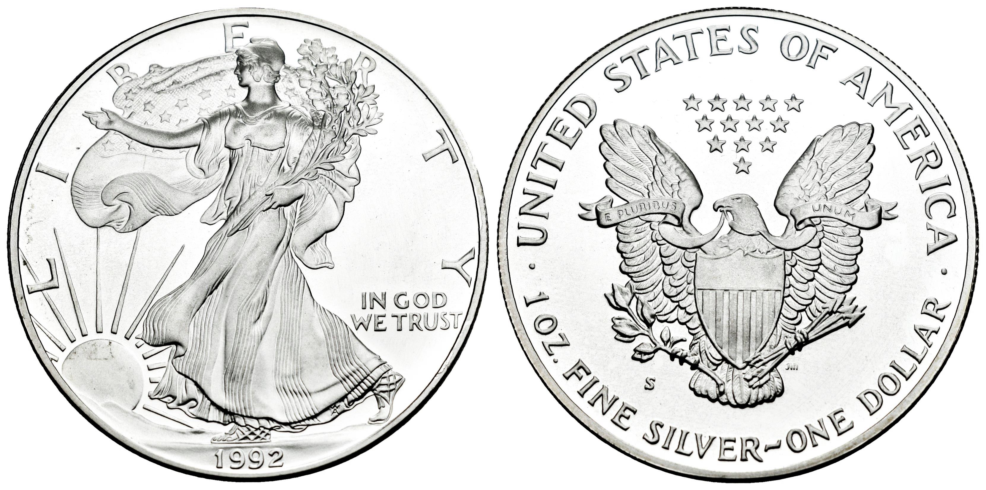 Estados Unidos. Silver Eagle. 1 dollar. 1992. San Francisco. S. (Km-273). Ag. 31,29 g. PROOF. Est...45,00.