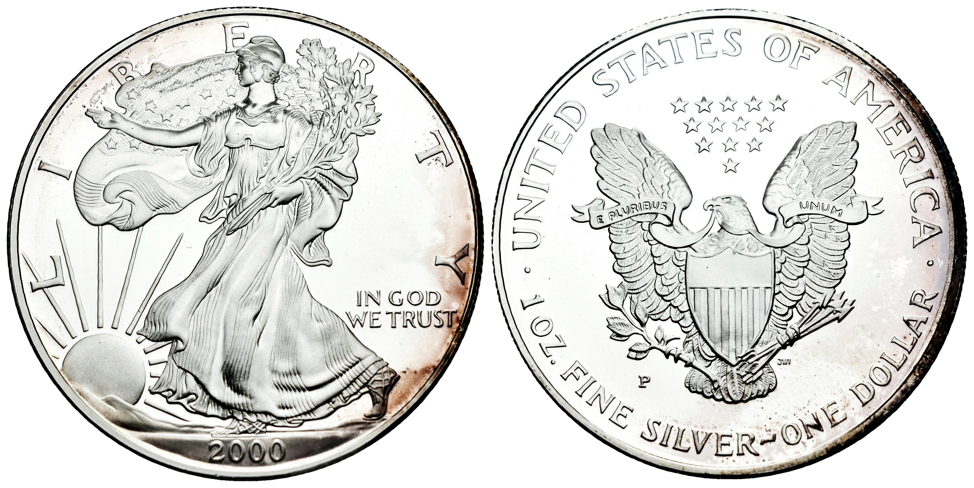 Estados Unidos. Silver Eagle. 1 dollar. 2000. Philadelphia. P. (Km-273). Ag. 31,33 g. PROOF. Est...45,00.