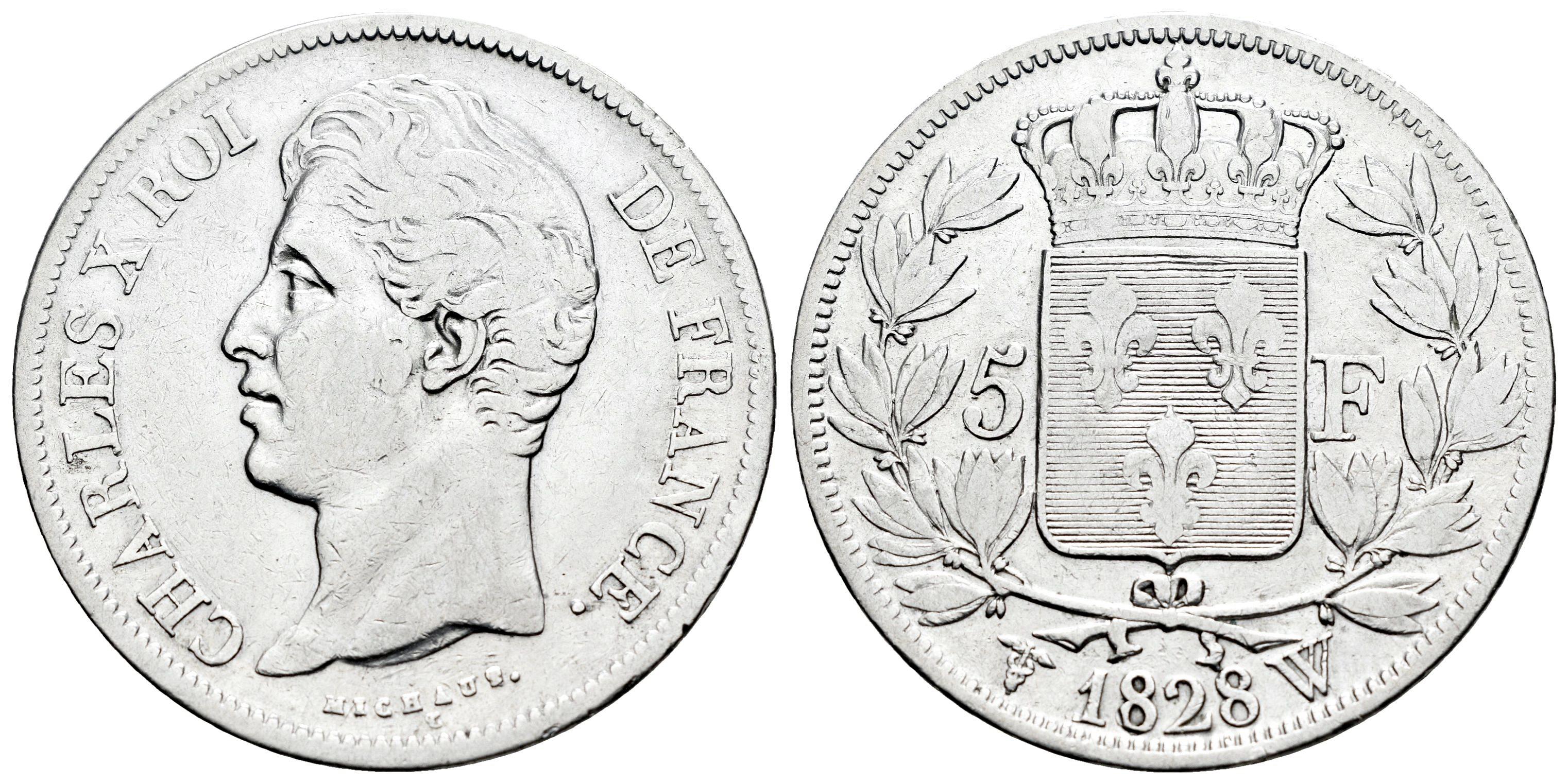 Francia. Charles X. 5 francs. 1828. Lille. W. (Km-728.13). (Gad-644). Ag. 24,80 g. Limpiada. BC/BC+. Est...20,00.