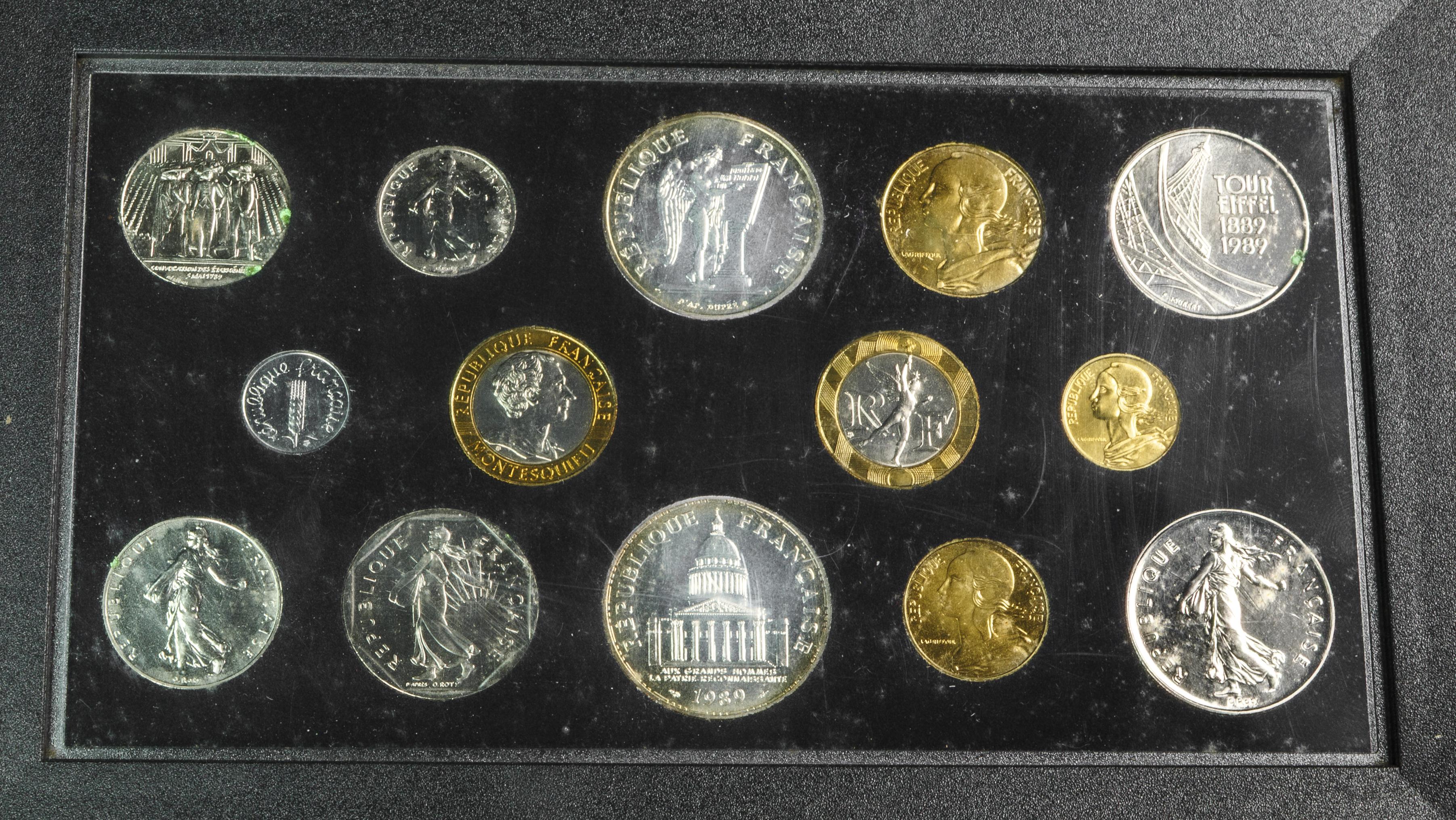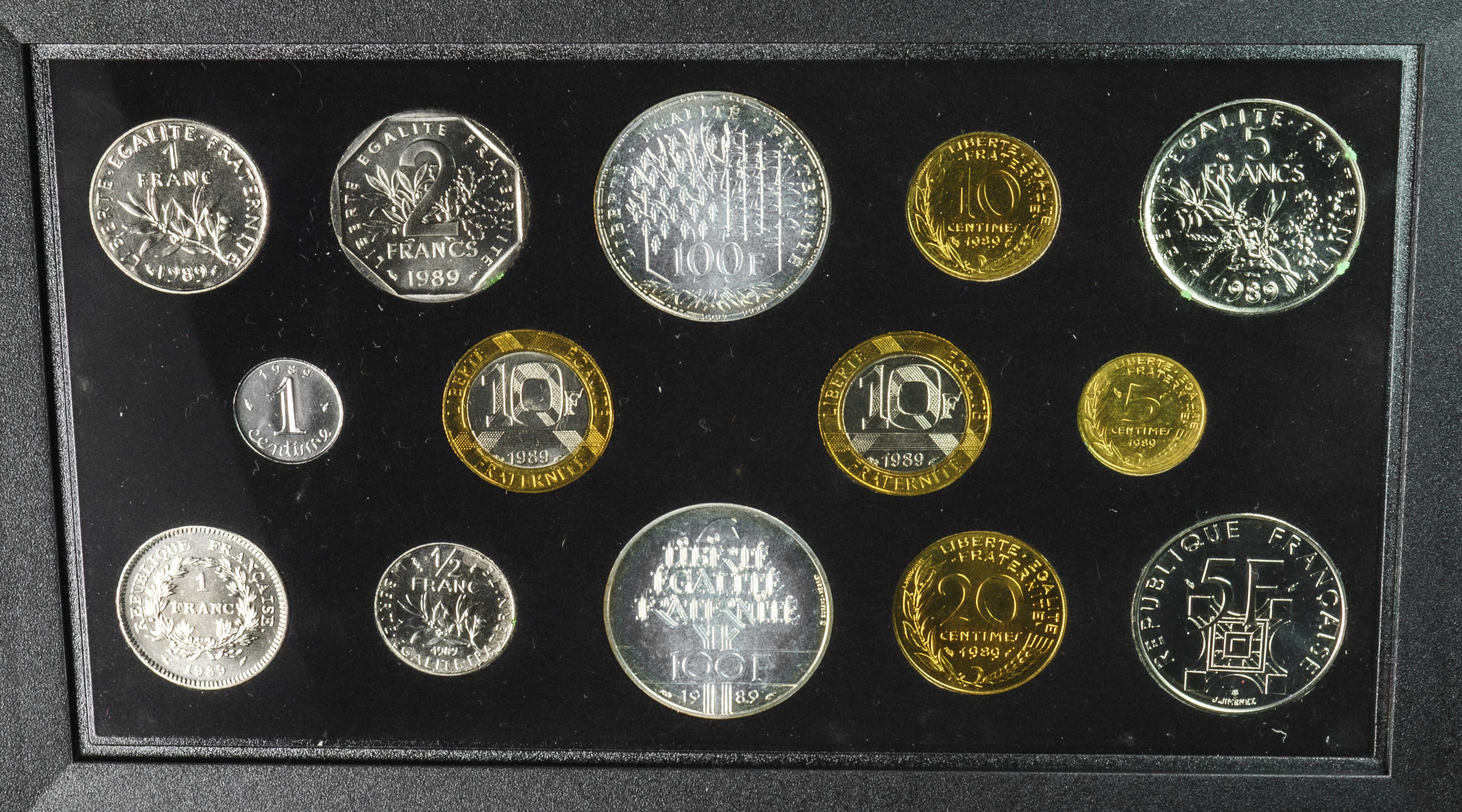 Francia. Serie completa 1989 presentada en un elegante estuche oficial (Monnair de Paris) con certificado. Incluye los raros 10 Francs Montesquieu (Km-969; Gad-828; F-376). PROOF. Est...250,00.