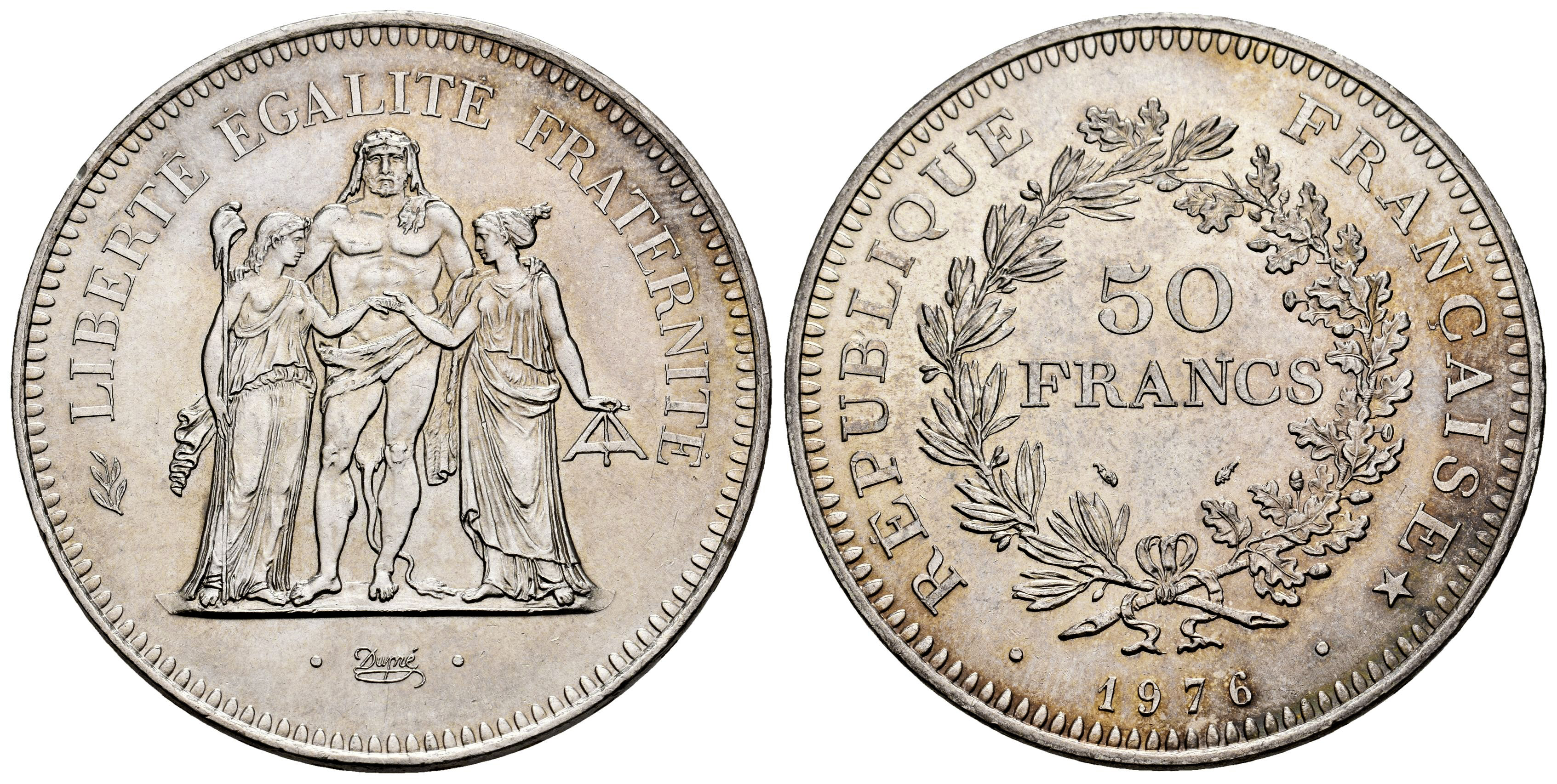 Francia. 50 francs. 1976. (Km-941.1). (Gad-882). Ag. 29,92 g. Pleno brillo original. SC. Est...35,00.
