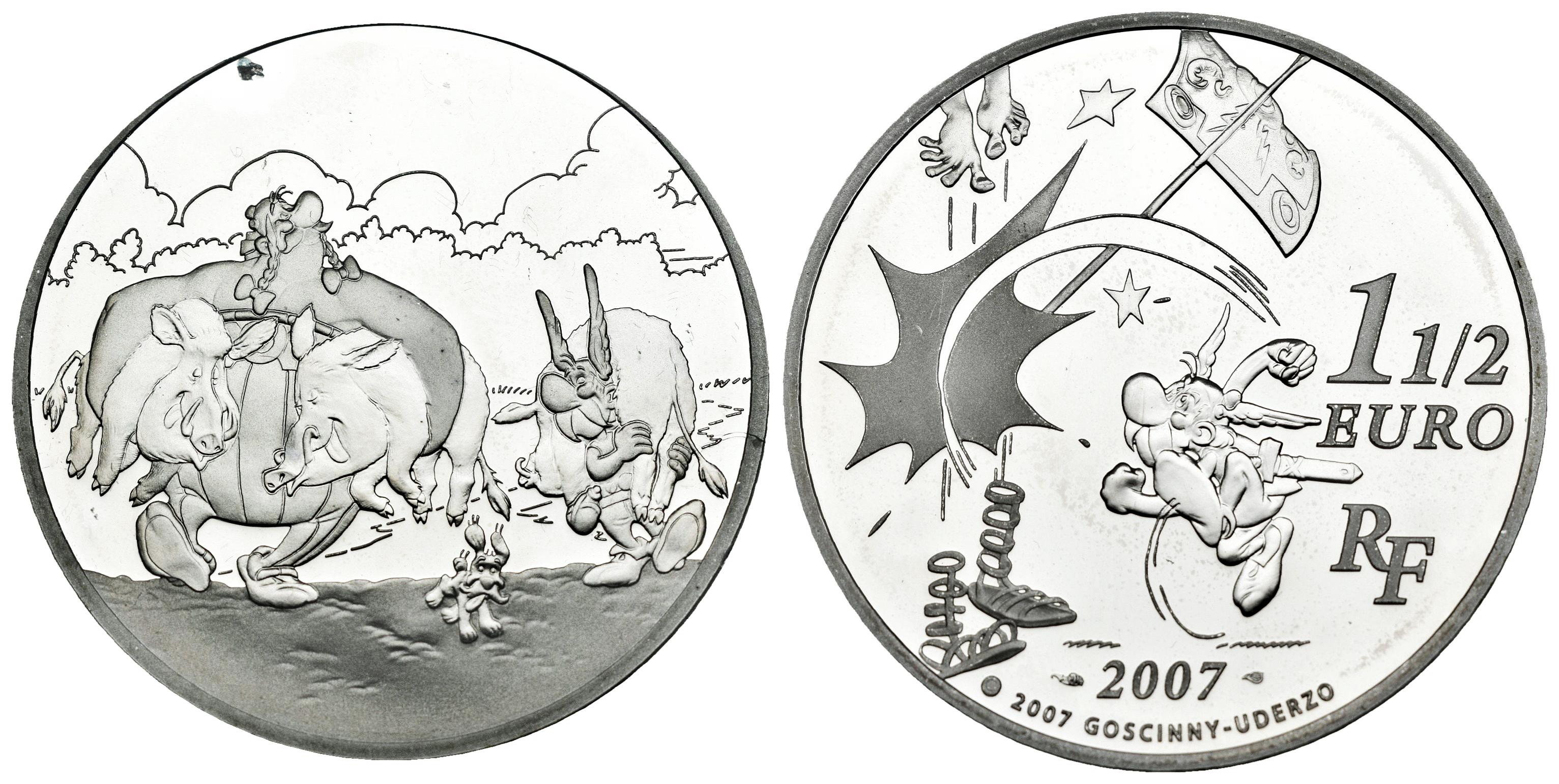 Francia. 1 1/2 euros. 2007. París. (Km-1518). (Gad-EURO#C234). Ag. Serie Asterix. Con certificado oficial. PROOF. Est...45,00.
