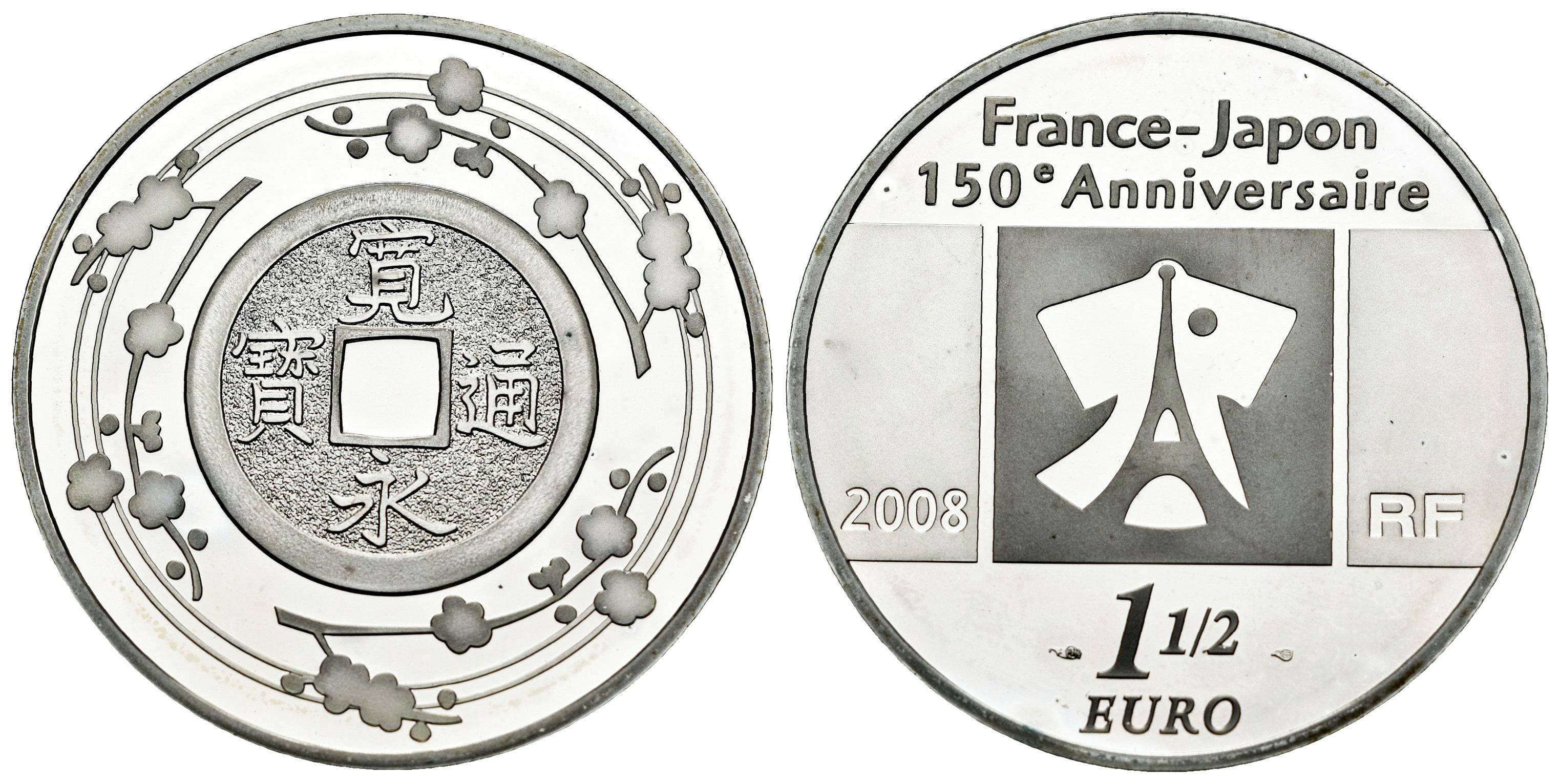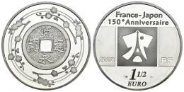 Francia. 1 1/2 euros. 2008. (Km-1551). (Gad-EURO#C325). Ag. 22,36 g. 150º Aniversario de Realacciones Diplomáticas con Japón. Con certificado oficial. PROOF. Est...25,00.