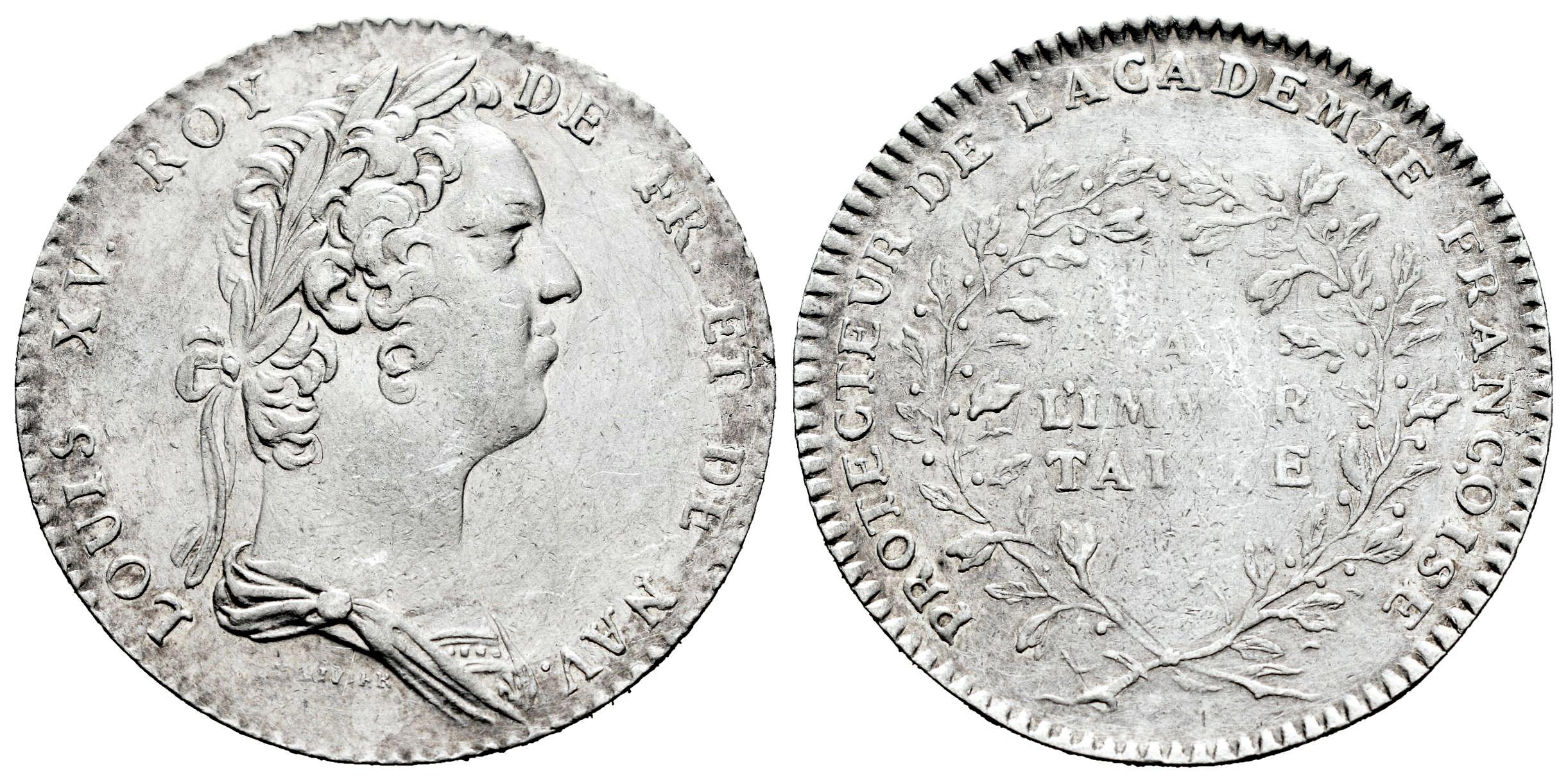Francia. Louis XV (1715-1774). Jetón. ND (1732). (Feuardent-4377). Rev.: PROTECTEUR DE L'ACADEMIE FRANÇOISE. Au. 6,89 g. Limpiada. EBC-. Est...25,00.