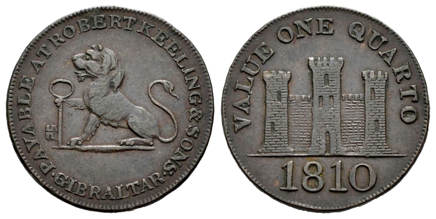 Gibraltar. 1 cuarto. 1810. (Km-Tn3.1). Ae. 3,41 g. MBC+. Est...25,00.