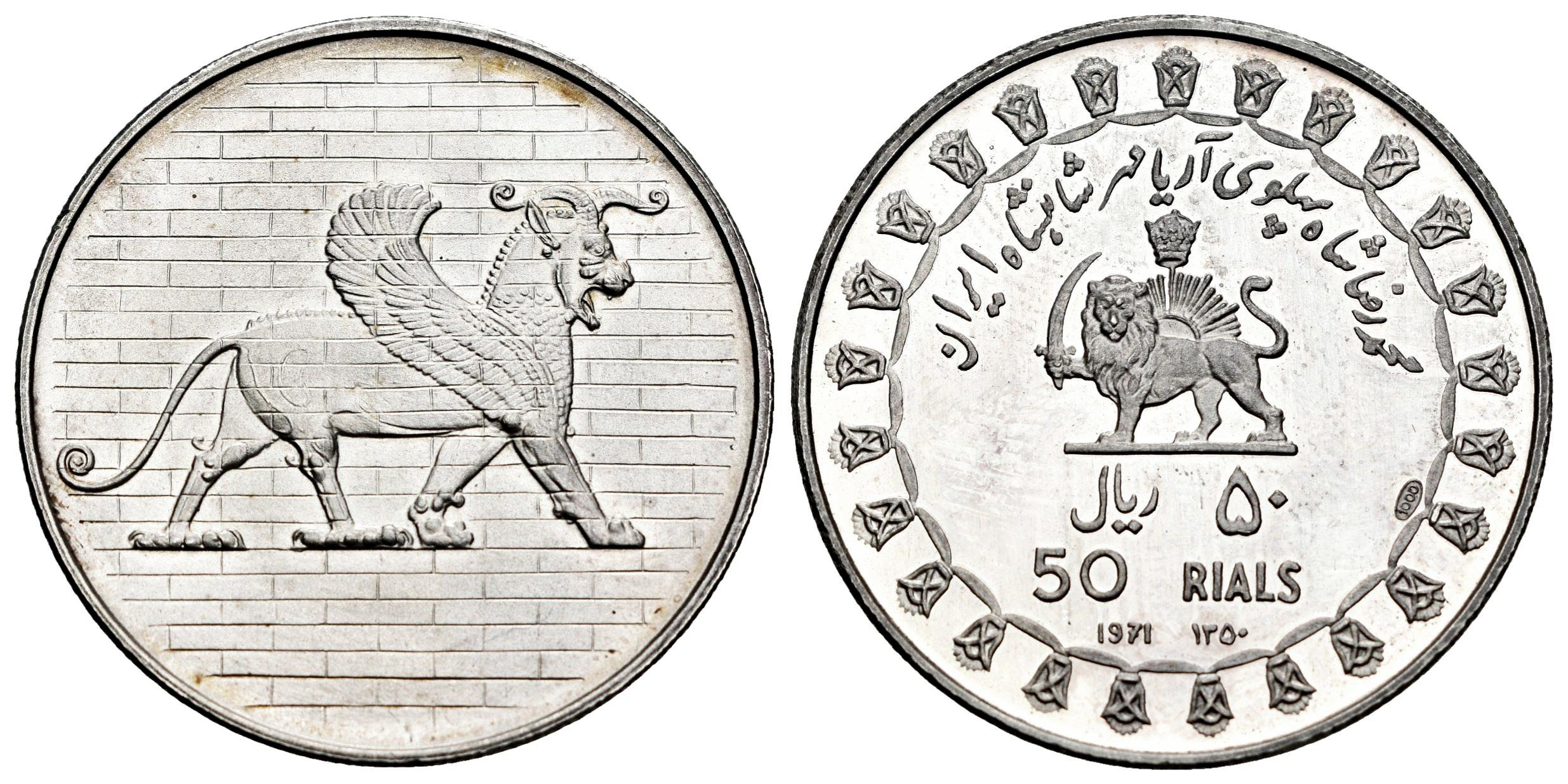 Irán. Mohammad Reza Palhevi. 25 rials. 1350 H (1971). (Km-1185). Ag. 15,25 g. 2500 Aniversario del Imperio Persa. Tirada de 18.000 piezas. PROOF. Est...30,00.