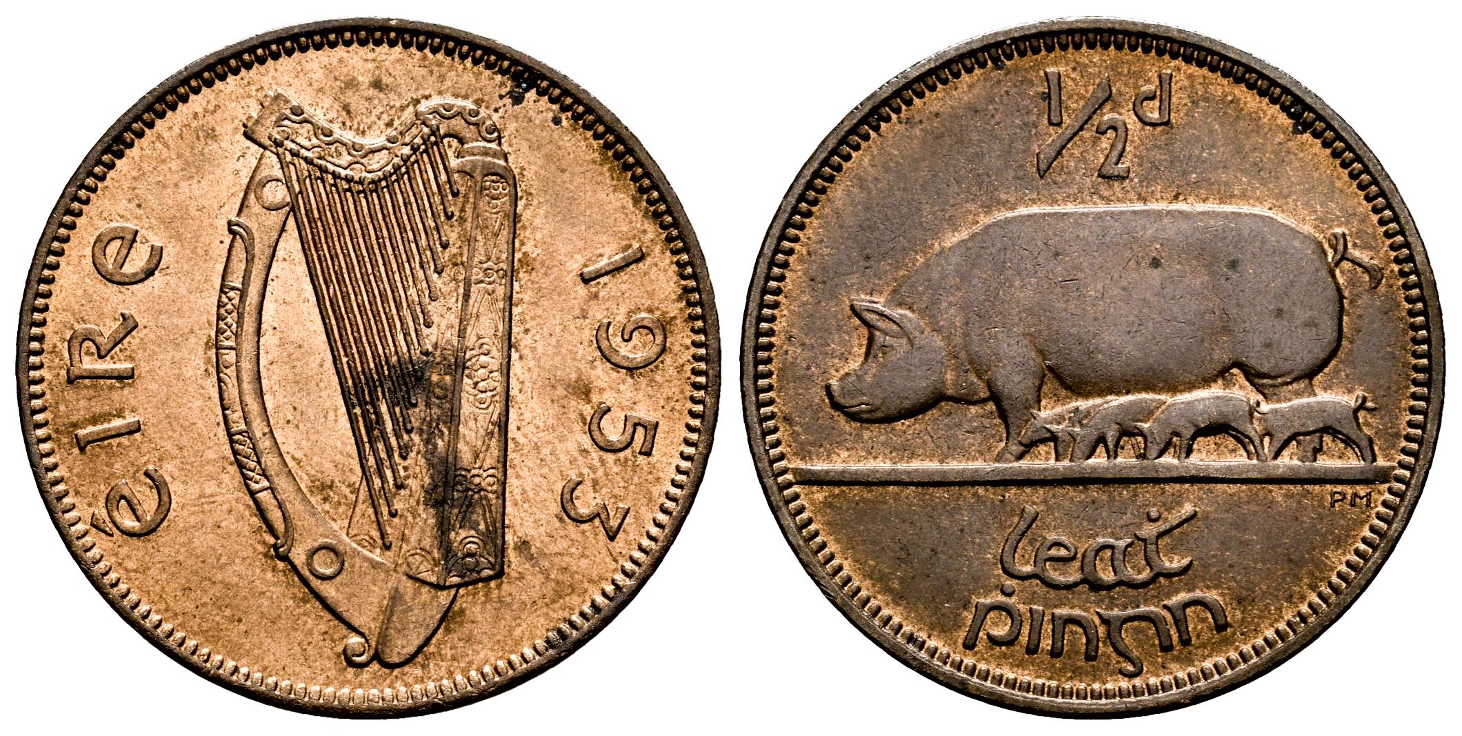 Irlanda. 1/2 penny. 1953. (Km-10). Ae. 5,71 g. Restos de brillo original. EBC. Est...12,00.