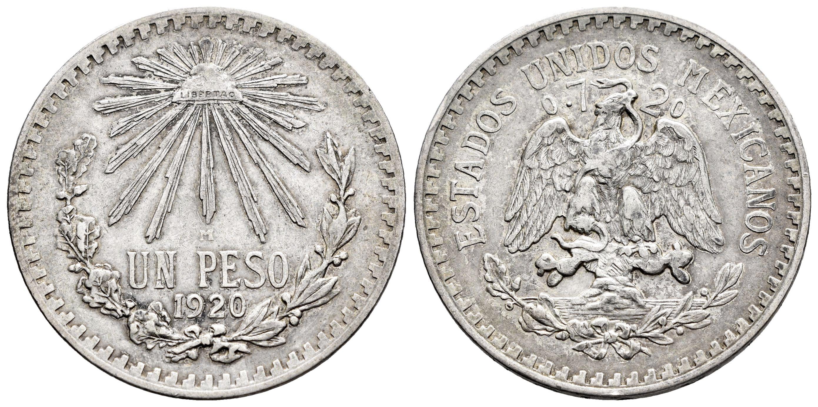 México. 1 peso. 1920. México. M. (Km-455). Ag. 16,57 g. MBC+. Est...30,00.