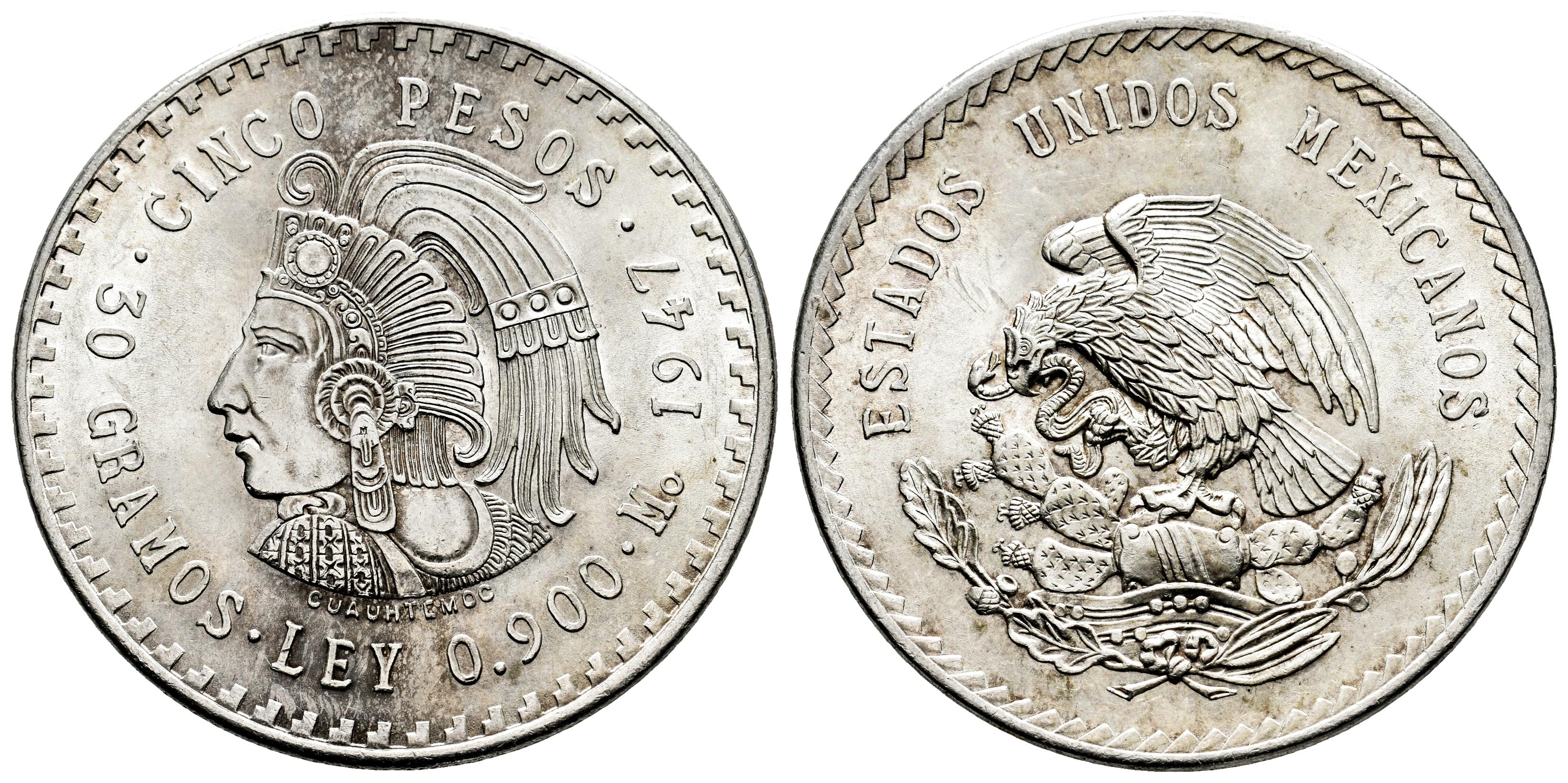 México. 5 pesos. 1947. México. (Km-465). Ag. 29,98 g. Brillo original. SC-. Est...45,00.