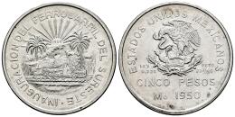 México. 5 pesos. 1950. Ciudad de México. (Km-466). Ag. 27,71 g. Inauguración del ferrocarril del sureste. Brillo original. EBC+. Est...60,00.