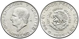 México. 5 pesos. 1955. México. (Km-469). Ag. 18,06 g. "Hidalgo". Marquita en reverso. EBC+. Est...25,00.