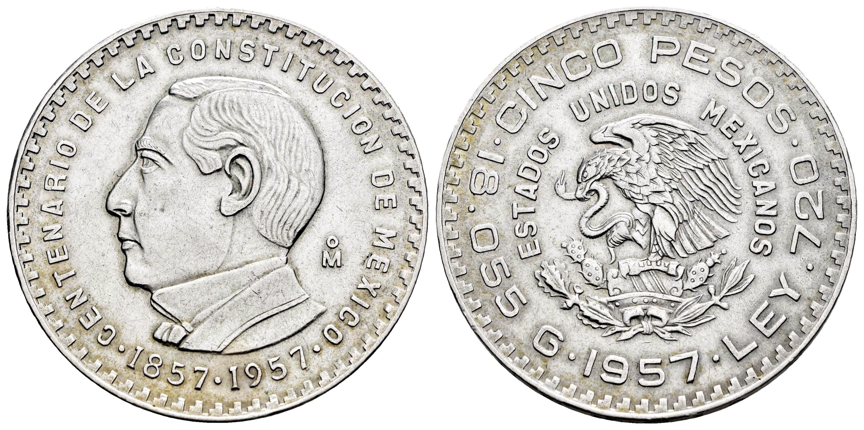 México. 5 pesos. 1957. (Km-470). Ag. 18,08 g. EBC. Est...35,00.