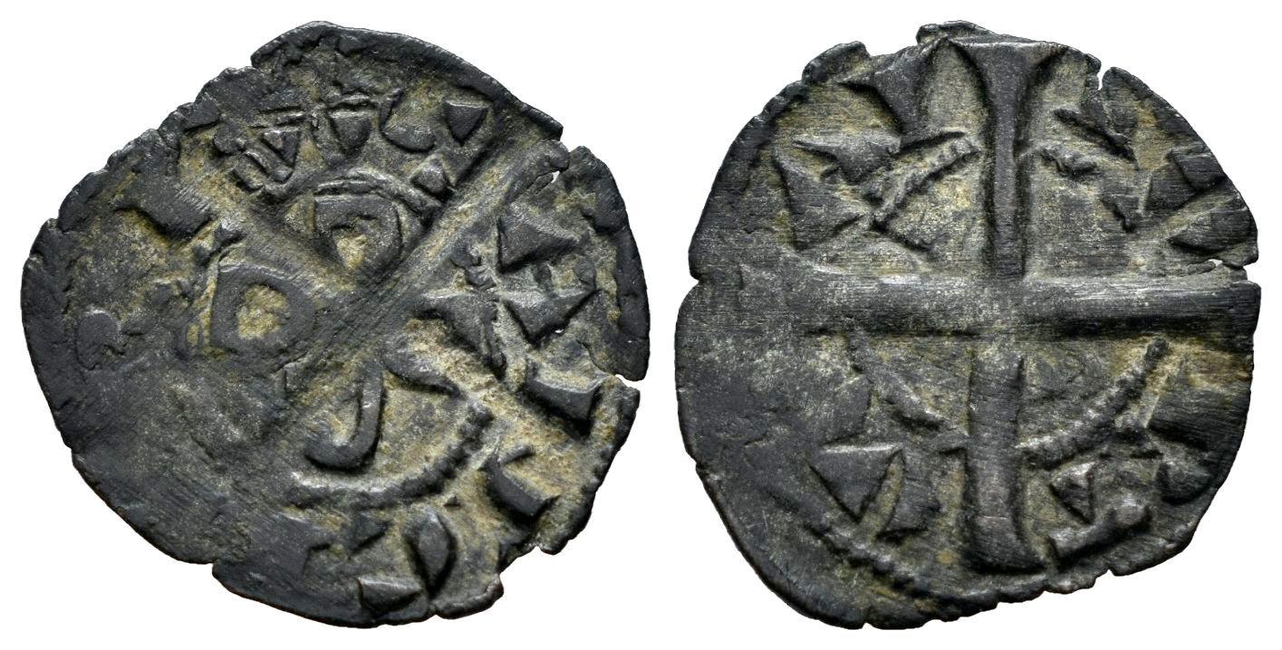 Portugal. D. Sancho II (1223-1248). Dinheiro. (Gomes-11.04). Anv.: SANCII REX. Rev.: PO - RT - VG - AL. Ve. 0,47 g. MBC. Est...25,00.