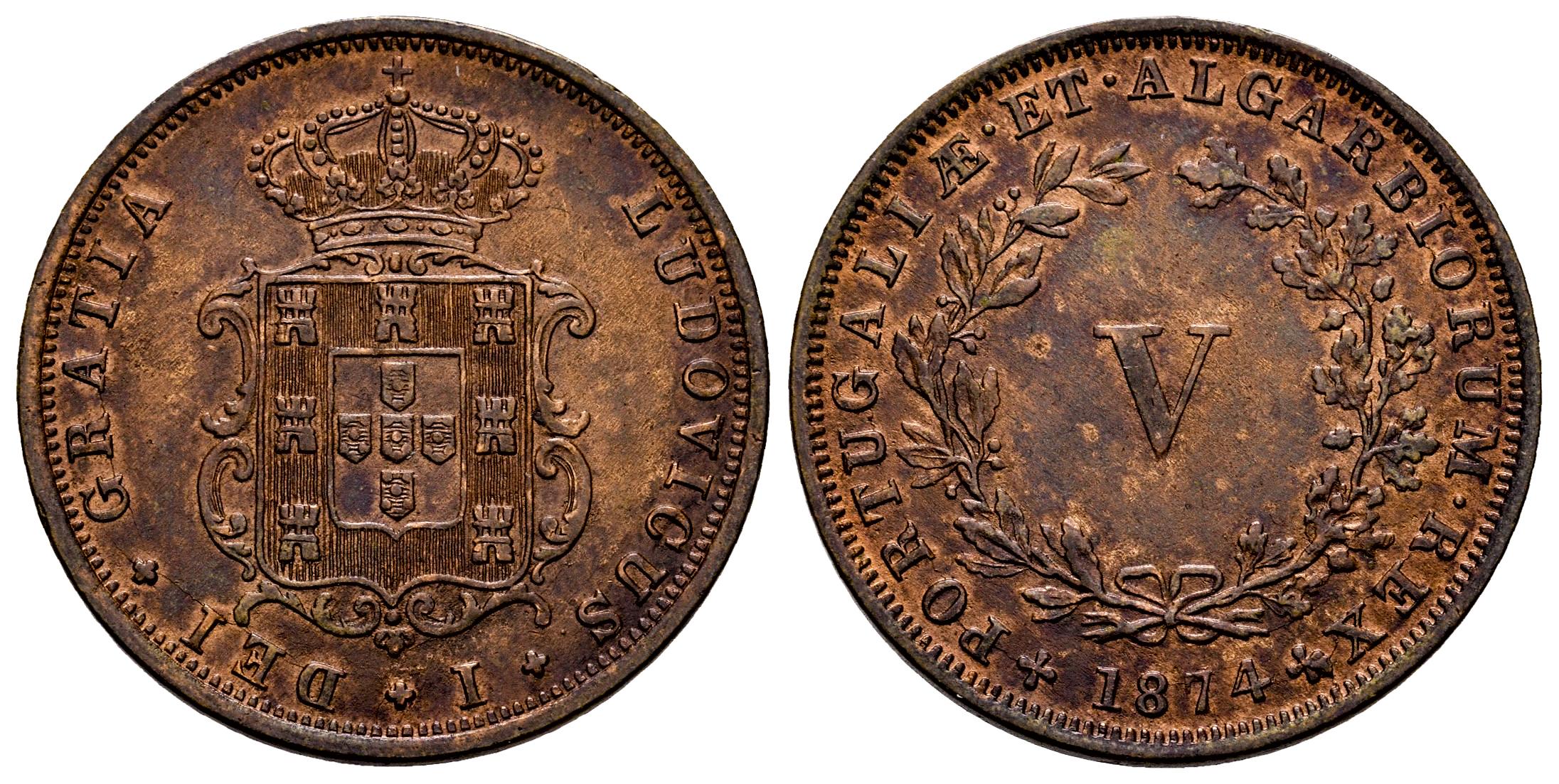 Portugal. D. Luís I (1861-1889). 5 reis. 1874. (Km-513). (Gomes-02.06). Ae. 6,15 g. EBC-. Est...25,00.