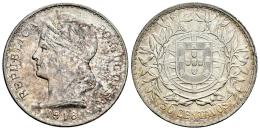 Portugal. 50 centavos. 1916. Lisboa. (Km-561). Ag. 12,44 g. Brillo original con ligera pátina en anverso. EBC+/SC-. Est...30,00.