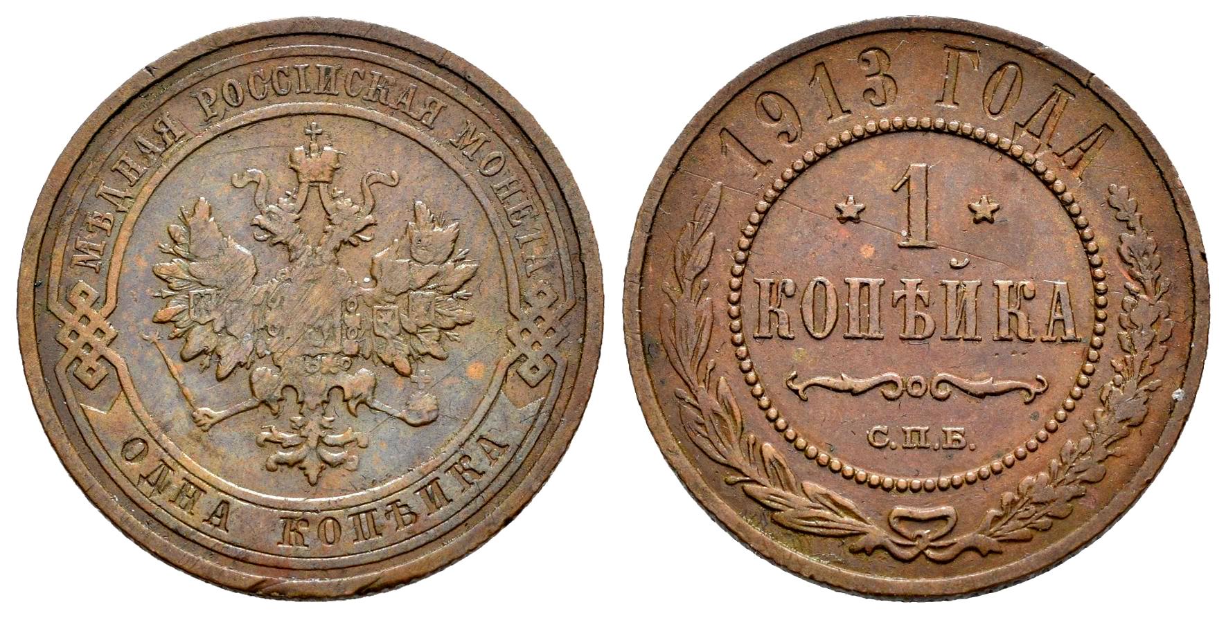 Rusia. Nicholas II (1894-1917). 1 kopek. 1913. San Petesburgo. СПБ. (Km-Y#9.2). (Bitkin-260). Ae. 3,24 g. MBC. Est...15,00.