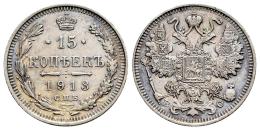 Rusia. Nicholas II (1894-1917). 15 kopecks. 1913. San Petesburgo. СПБ. (Km-Y21a.2). (Bitkin-140). Ag. 2,64 g. Ligero tono. Restos de brillo original. EBC. Est...40,00.