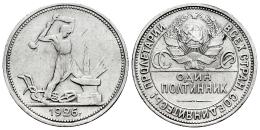 Rusia. 50 kopeks. 1926. San Petesburgo. ПЛ. (Km-Y89.2). Ag. 10,00 g. Ligeramente limpiada . EBC/EBC+. Est...50,00.