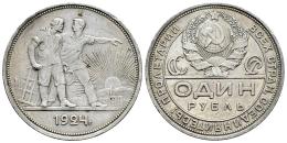 Rusia. 1 rouble. 1924. San Petesburgo. ПЛ. (Km-Y#90.1). Ag. 19,95 g. Golpecitos en el canto. MBC+/EBC-. Est...50,00.
