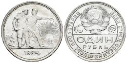 Rusia. 1 rouble. 1924. San Petesburgo. ПЛ. (Km-Y#90.1). Ag. 19,99 g. Pequeñas marcas. Brillo original. EBC/EBC+. Est...70,00.
