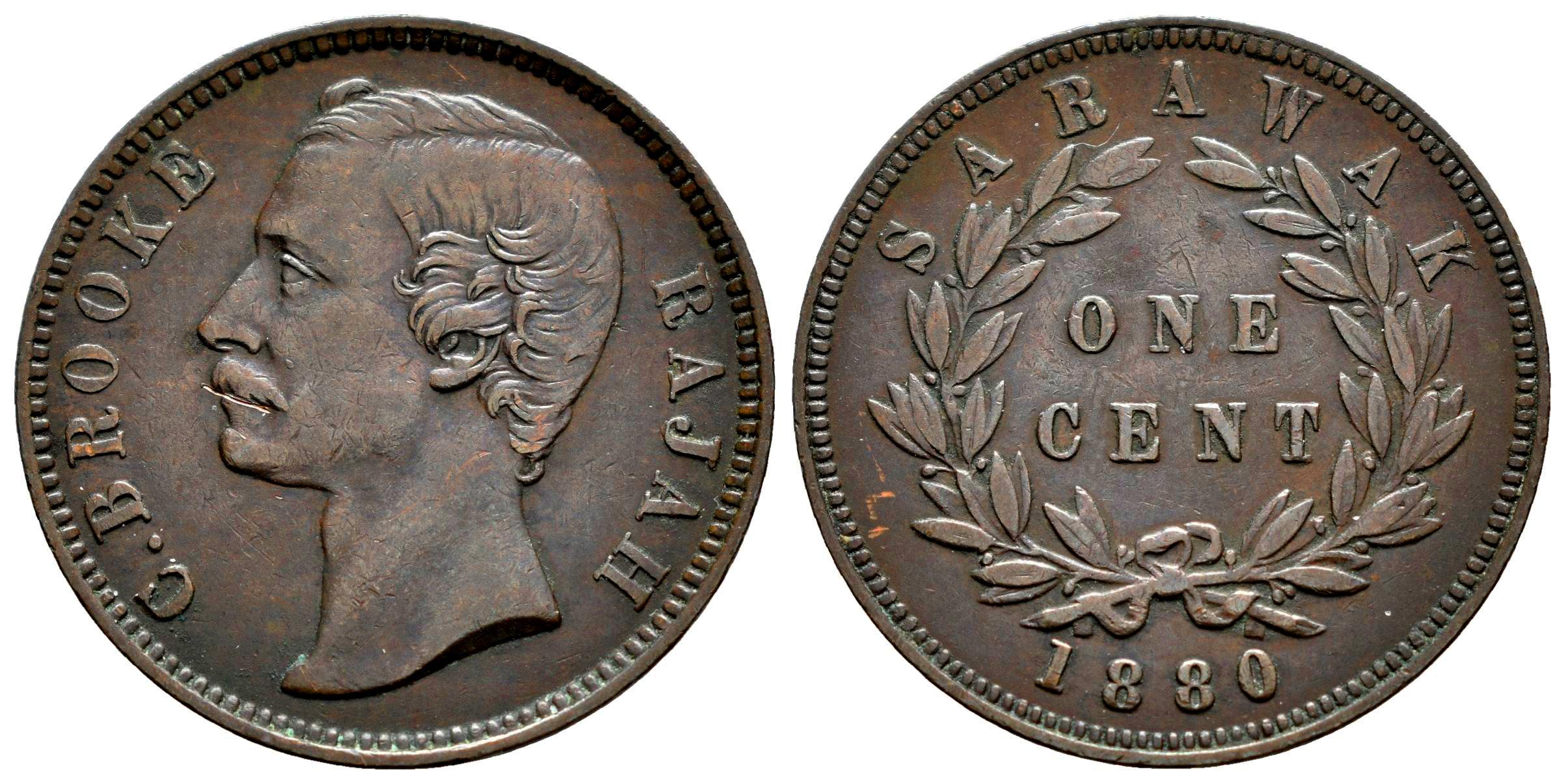 Sarawak. 1 cent. 1880. Heaton. (Km-6). Ae. 9,11 g. MBC+. Est...25,00.