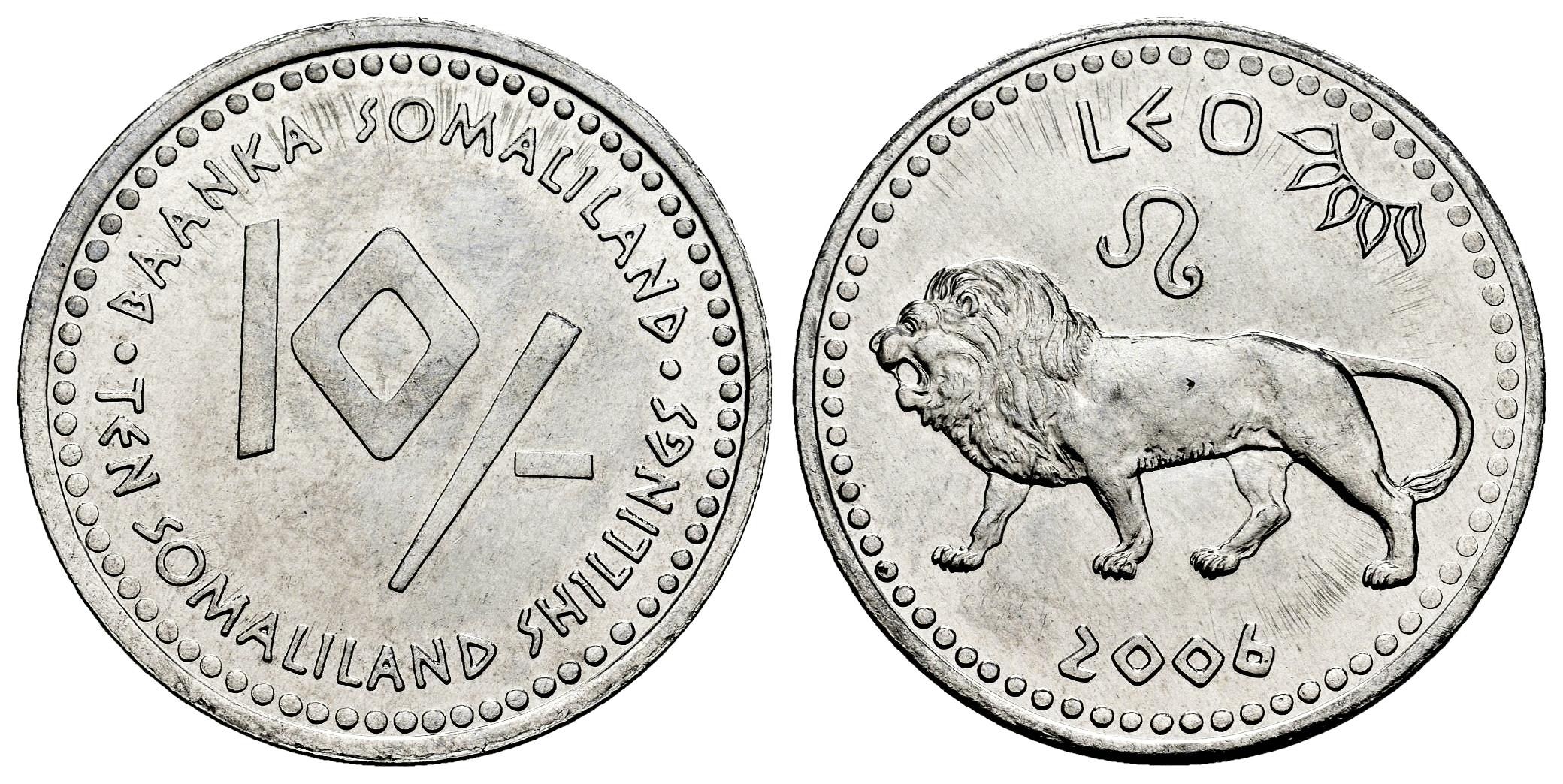 Somalia. 10 shillings. 2006. (Km-13). Acero. 5,51 g. Leo. Pleno brillo original. SC. Est...15,00.