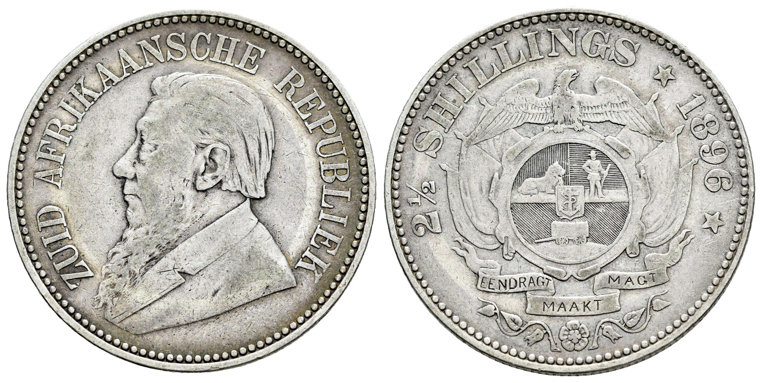 Sudáfrica. 2 1/2 shillings. 1896. (Km-7). Ag. 14,04 g. MBC-. Est...50,00.
