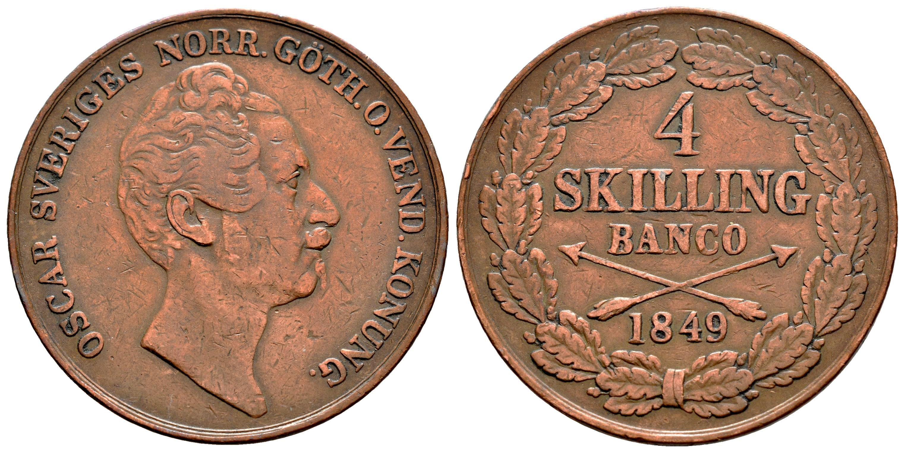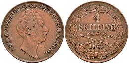 Suecia. Oscar I. 4 skilling. 1849. (Km-672). Ae. 25,22 g. MBC. Est...25,00.