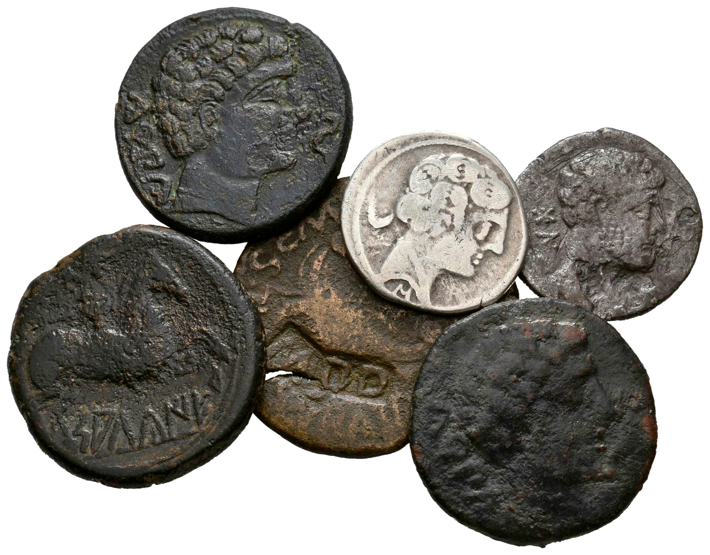 Lote de 6 monedas de Hispania Antigua. Contentiendo de: Bolskan Denario, Konterbia Karbika As (2), Sagunto As, Salduie As y Sekobirikes Denario. Ae/Ar. Es imprescindible un riguroso examen. SOLO ENVÍO A ESPAÑA PENÍNSULA. NO SE ADMITE DEVOLUCIÓN. BC-/MBC. Est...200,00.