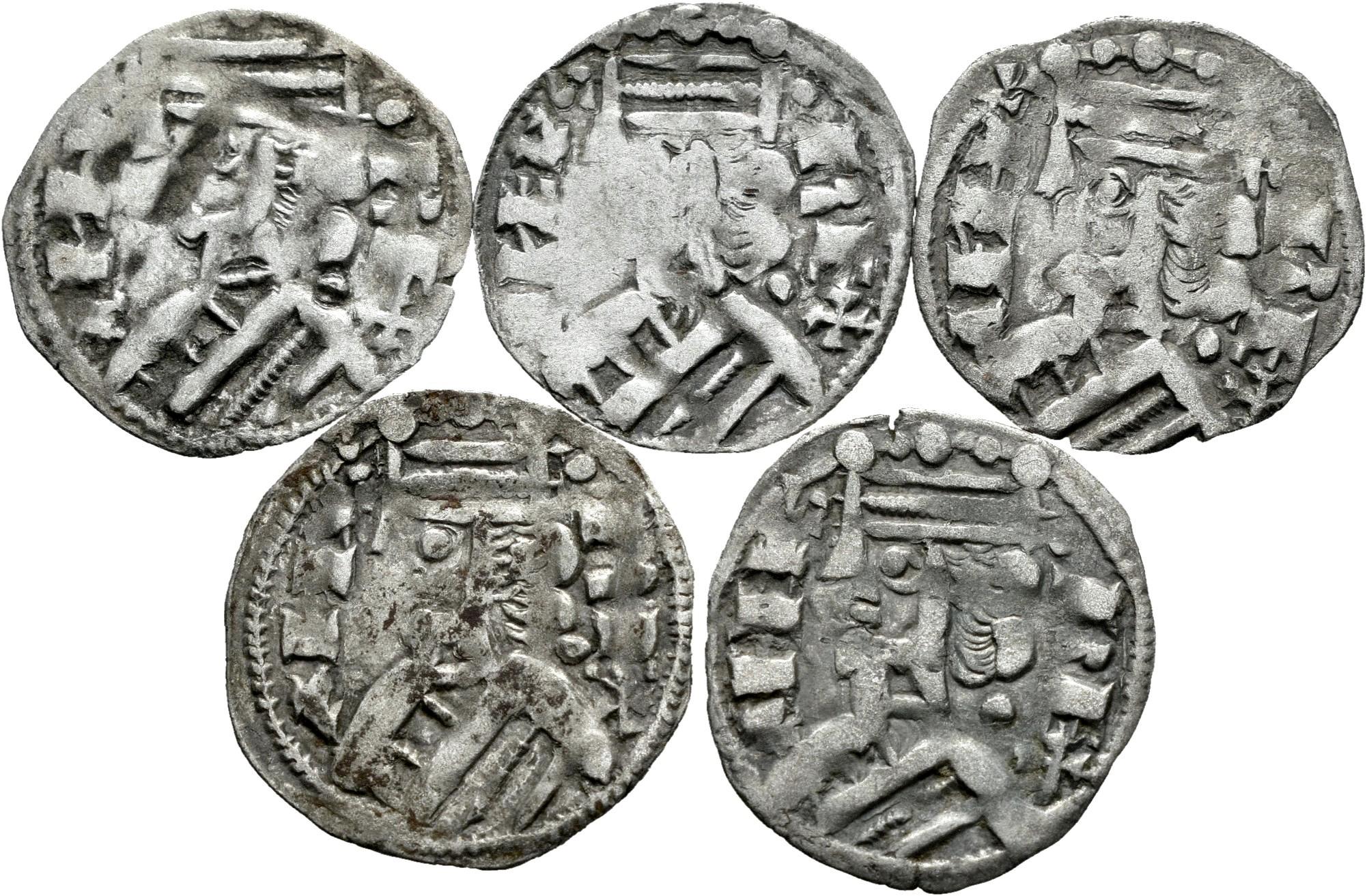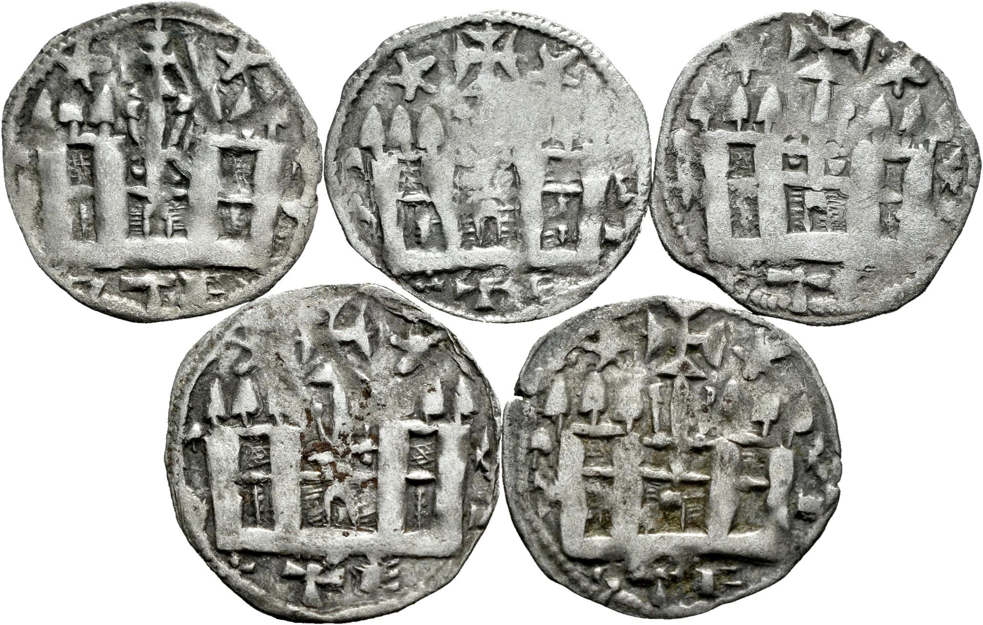 Lote de 5 monedas de la Edad Media. Dineros de Alfonso VIII, variante estrellas a los lados de la cruz. Ve. A EXAMINAR. MBC-/MBC+. Est...250,00.