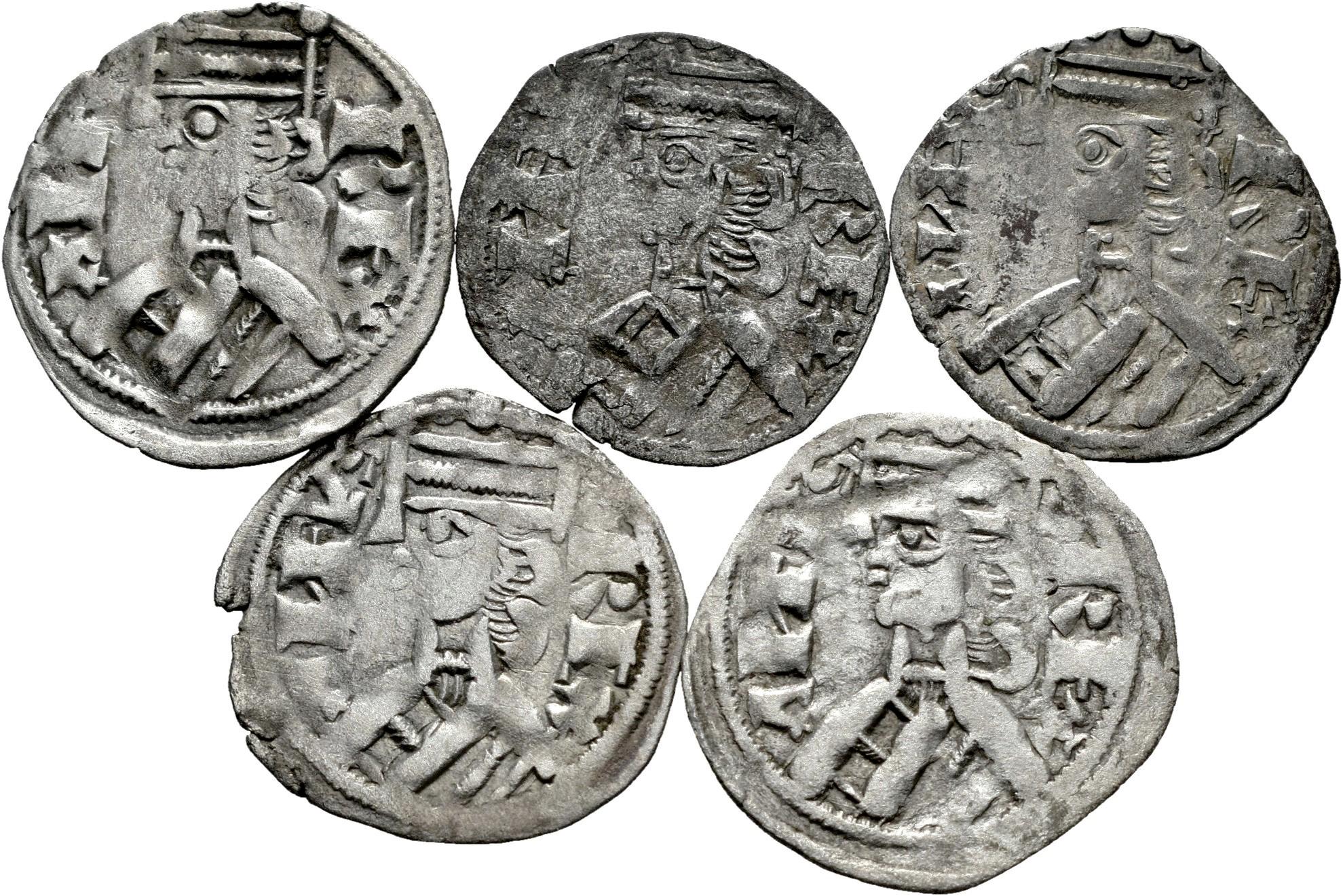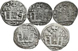 Lote de 5 monedas de la Edad Media. Dineros de Alfonso VIII, variante creciente y estrella a los lados de la cruz. Ve. Es imprescindible un riguroso examen. SOLO ENVÍO A ESPAÑA PENÍNSULA. NO SE ADMITE DEVOLUCIÓN. MBC-/MBC+. Est...300,00.