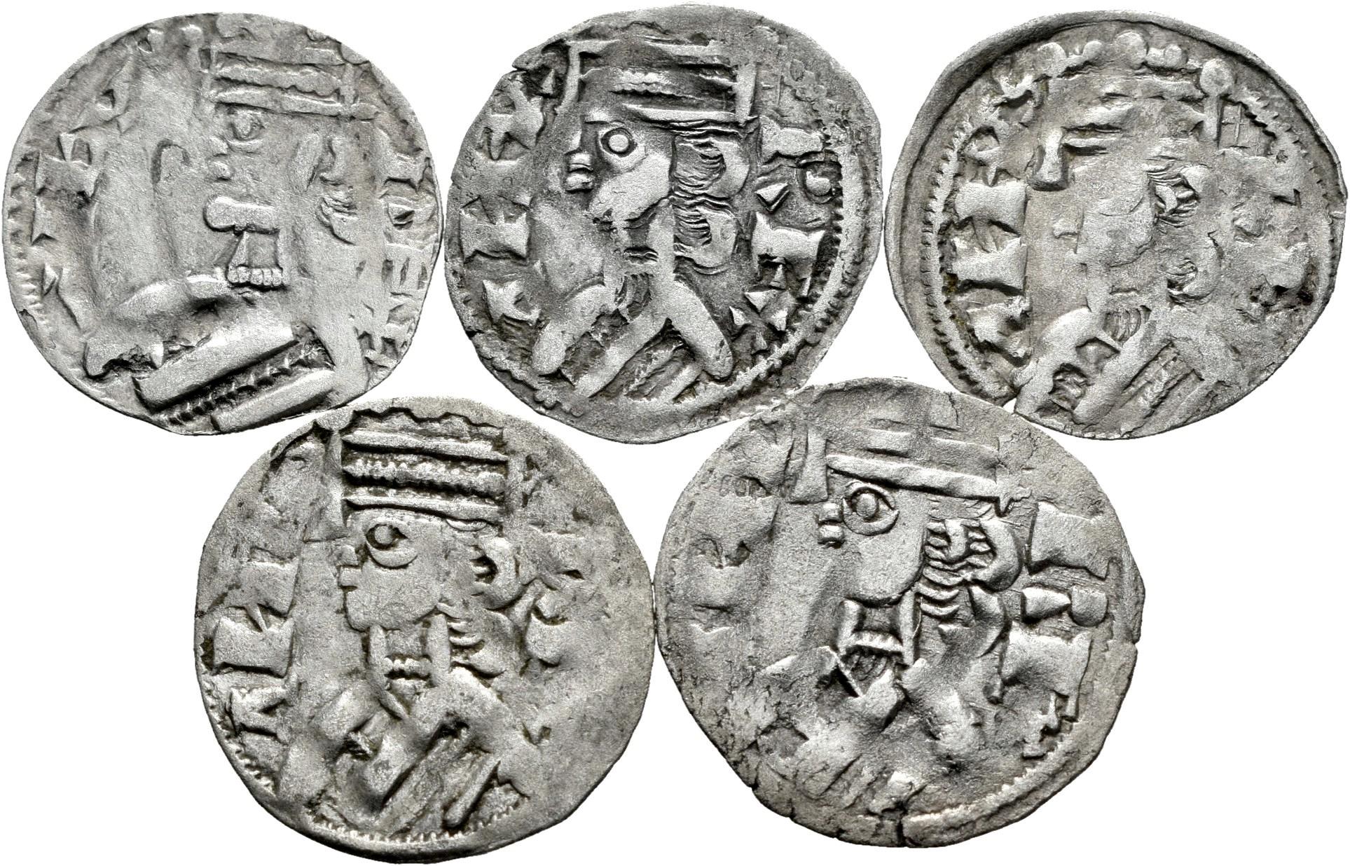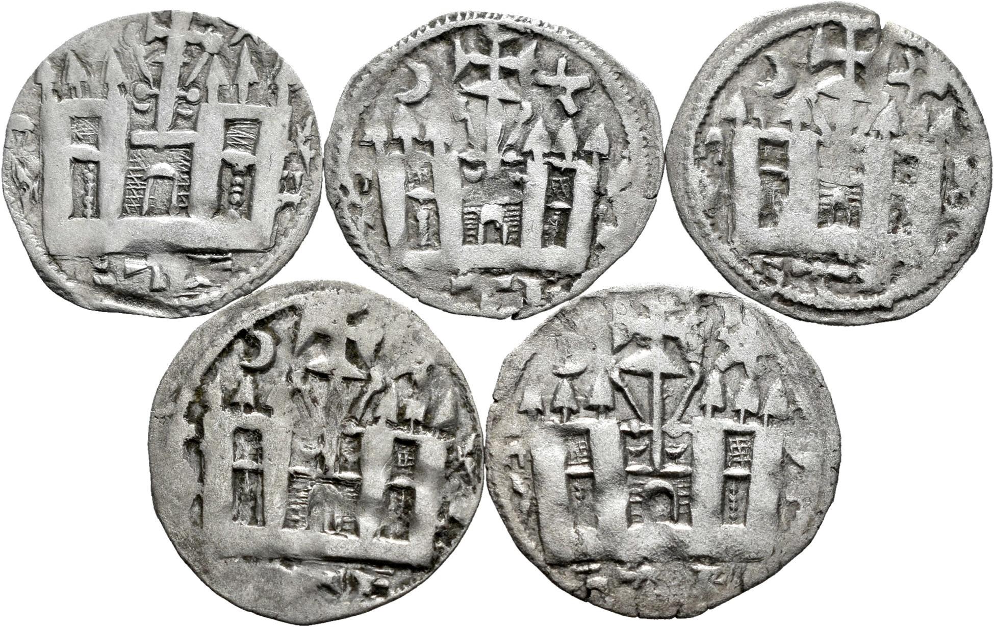 Lote de 5 monedas de la Edad Media. Dineros de Alfonso VIII, variante creciente y estrella a los lados de la cruz. Ve. Es imprescindible un riguroso examen. SOLO ENVÍO A ESPAÑA PENÍNSULA. NO SE ADMITE DEVOLUCIÓN. MBC-/MBC+. Est...300,00.