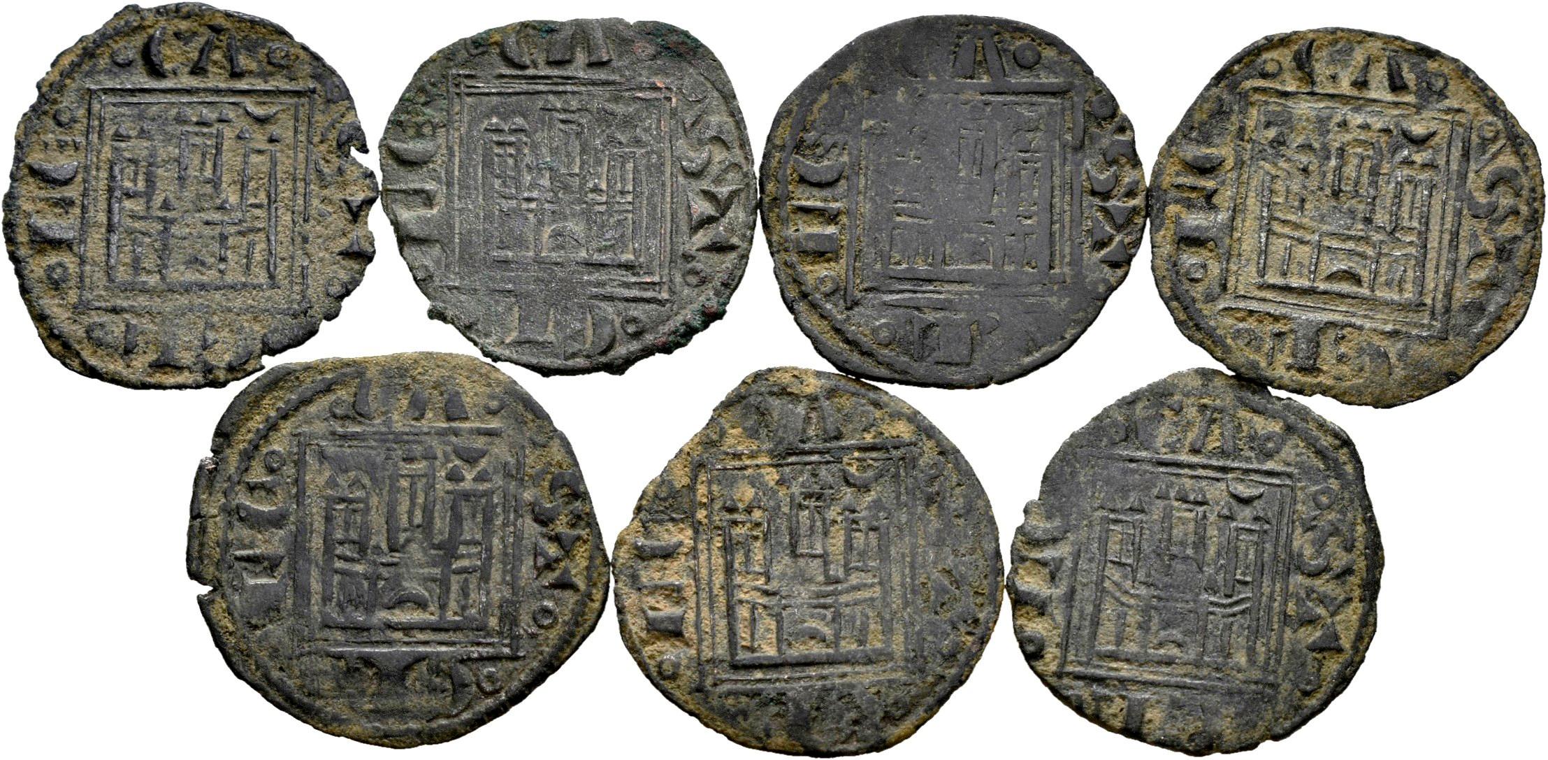 Lote de 7 monedas de la Época Medieval. Óbolos de Alfonso X, marca creciente sobre la torre derecha. Ve. Es imprescindible un riguroso examen. SOLO ENVÍO A ESPAÑA PENÍNSULA. NO SE ADMITE DEVOLUCIÓN. MBC/MBC+. Est...150,00.