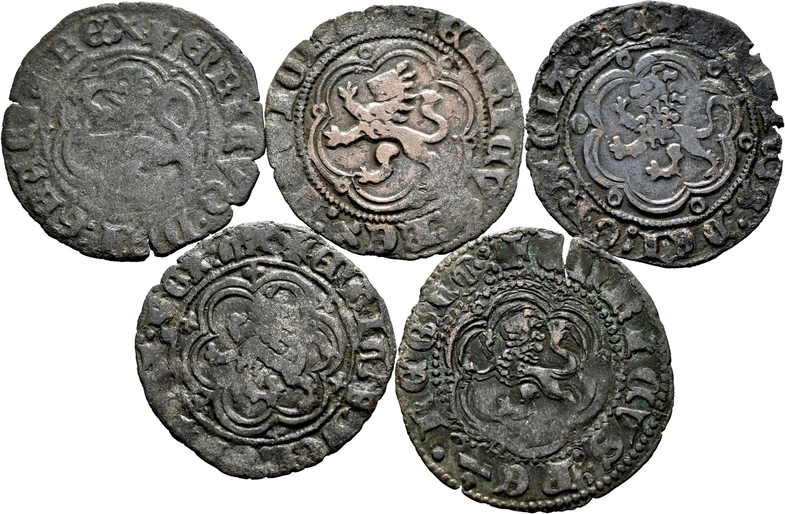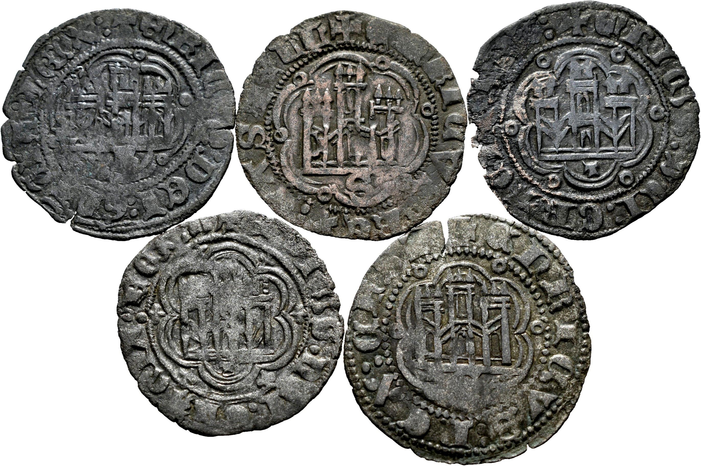 Lote de 5 blancas de Enrique III de diferentes cecas. Ve. Es imprescindible un riguroso examen. SOLO ENVÍO A ESPAÑA PENÍNSULA. NO SE ADMITE DEVOLUCIÓN. MBC-/MBC. Est...50,00.