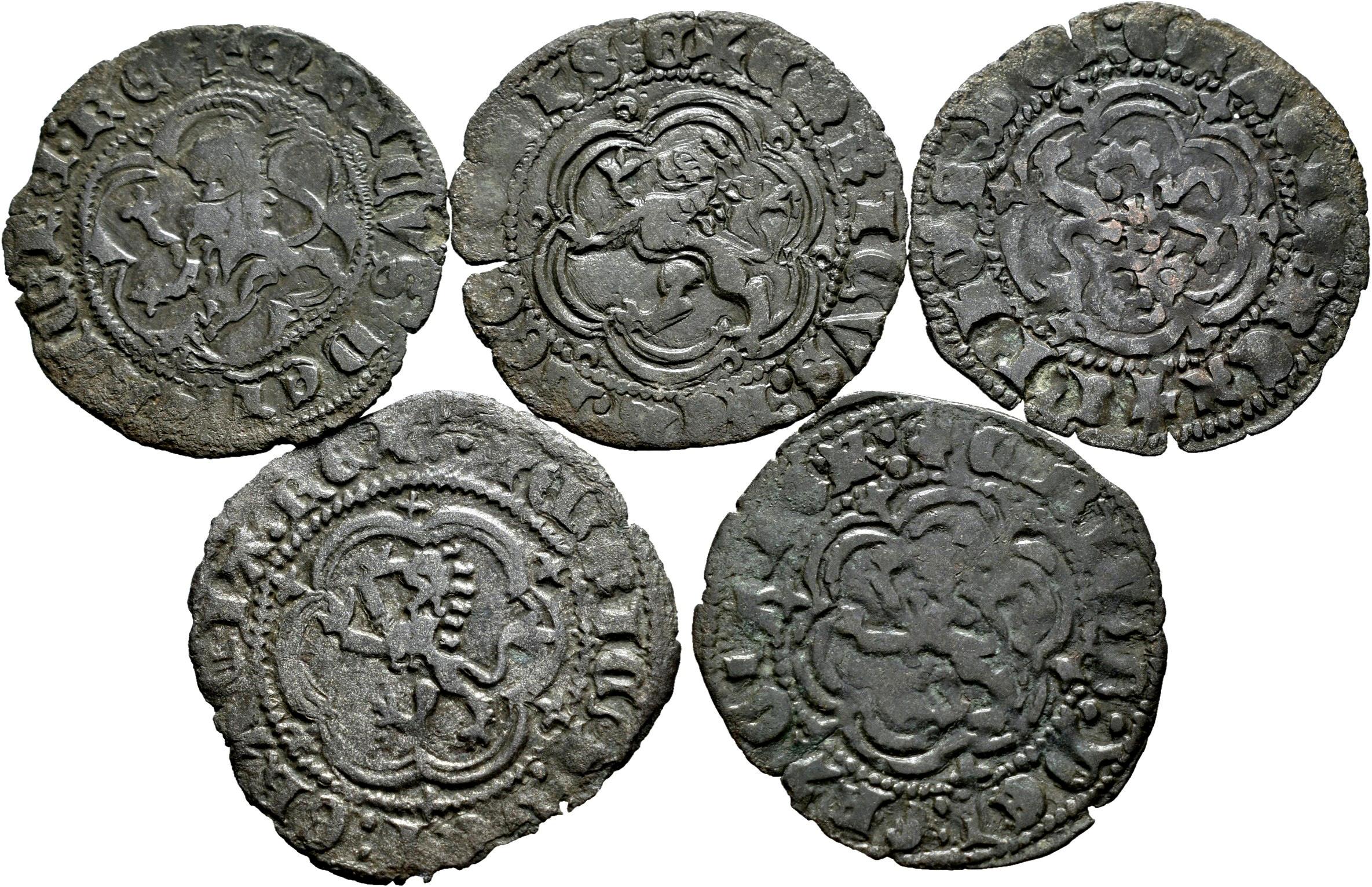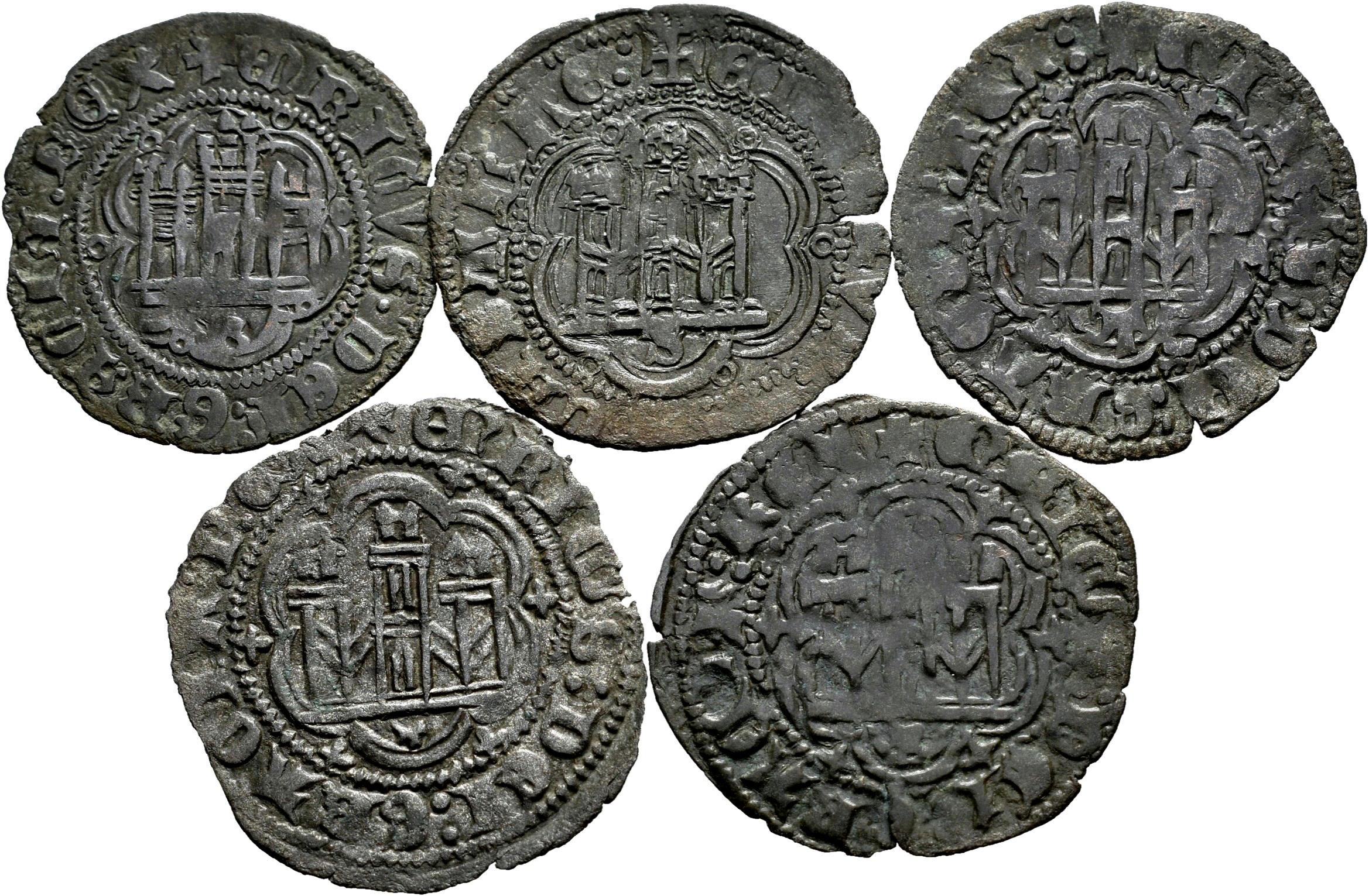 Lote de 5 blancas de Enrique III de diferentes cecas. Ve. Es imprescindible un riguroso examen. SOLO ENVÍO A ESPAÑA PENÍNSULA. NO SE ADMITE DEVOLUCIÓN. MBC/MBC+. Est...60,00.