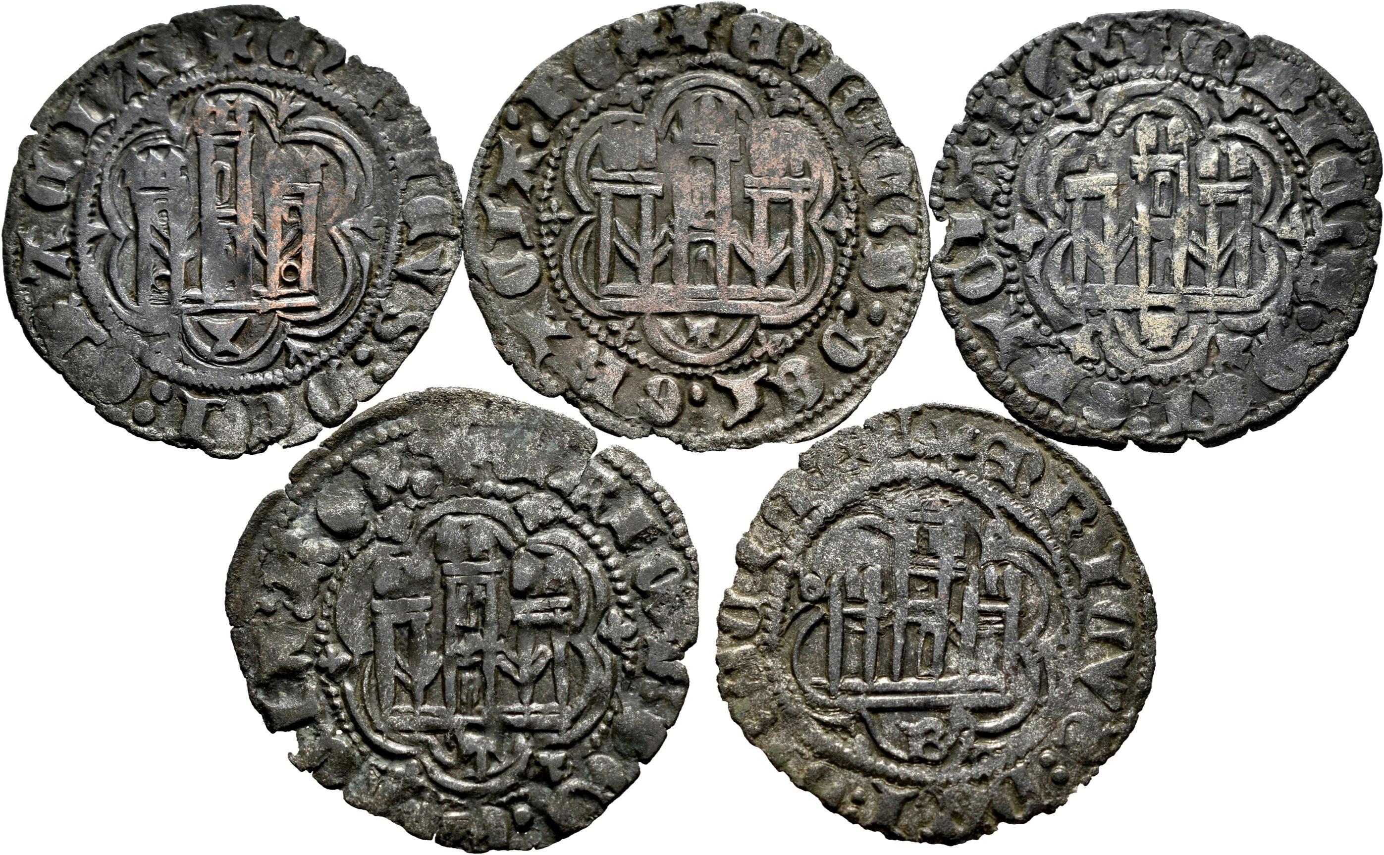 Lote de 5 blancas de Enrique III de diferentes cecas. Ve. Es imprescindible un riguroso examen. SOLO ENVÍO A ESPAÑA PENÍNSULA. NO SE ADMITE DEVOLUCIÓN. MBC/MBC+. Est...60,00.