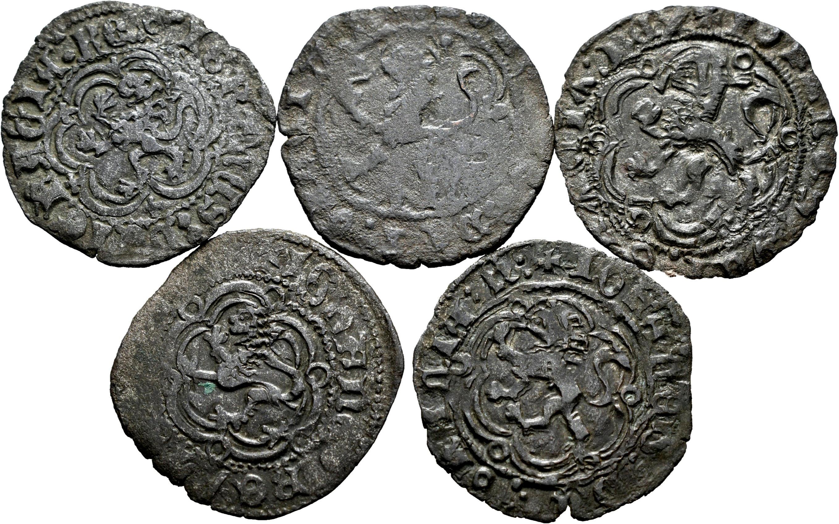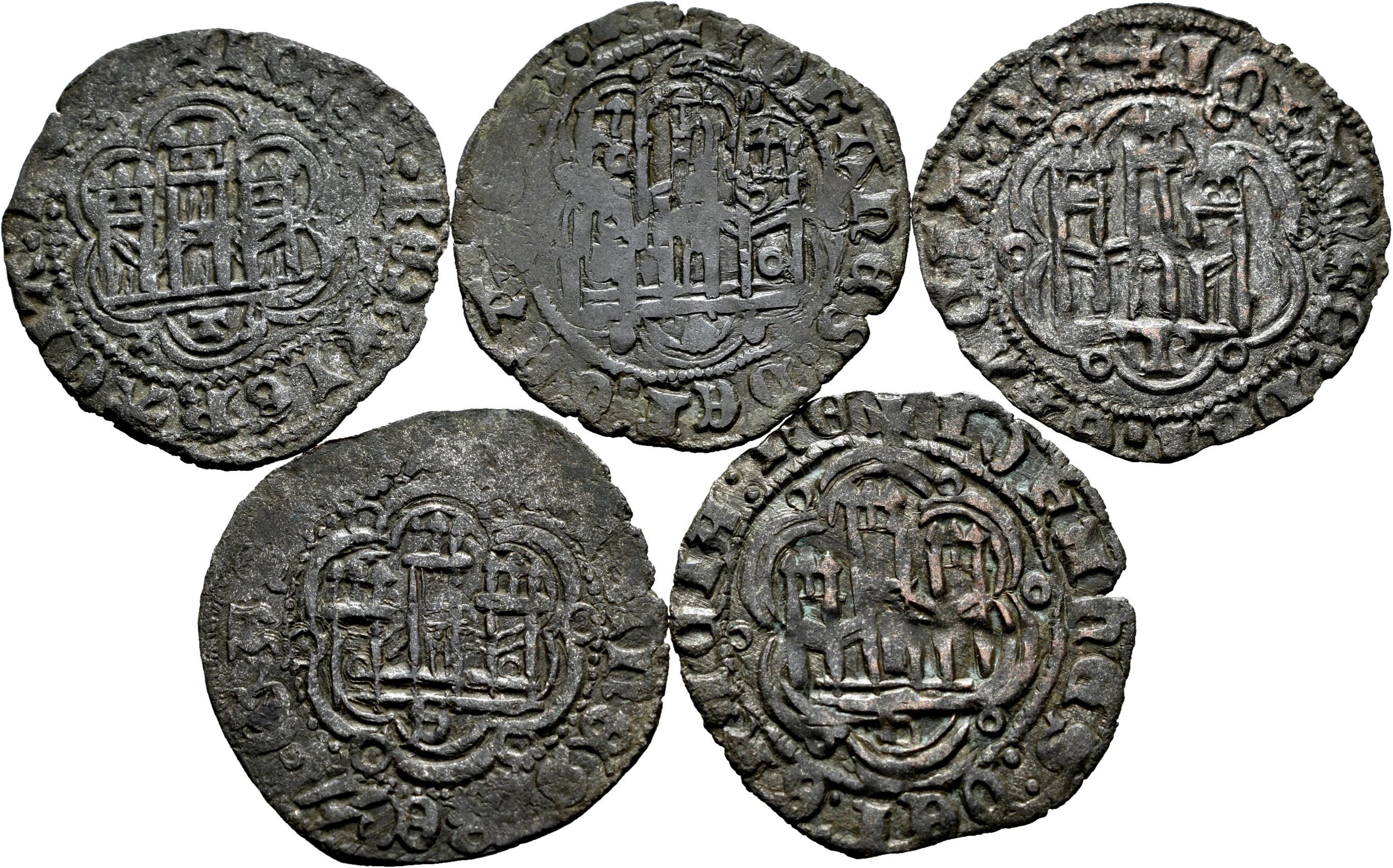Lote de 5 blancas de Juan II de diferentes cecas. Ve. Es imprescindible un riguroso examen. SOLO ENVÍO A ESPAÑA PENÍNSULA. NO SE ADMITE DEVOLUCIÓN. MBC-/MBC. Est...60,00.